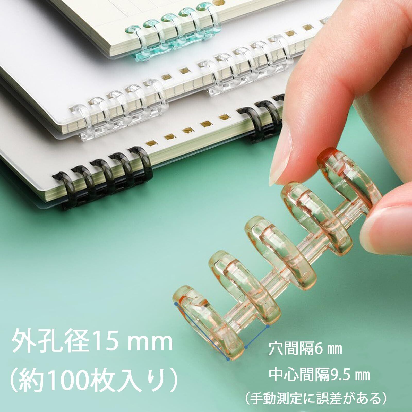 【寸法】穴間隔6 mm、中心間隔9.5 mm、外孔径15 mm(紙約100枚入り)。