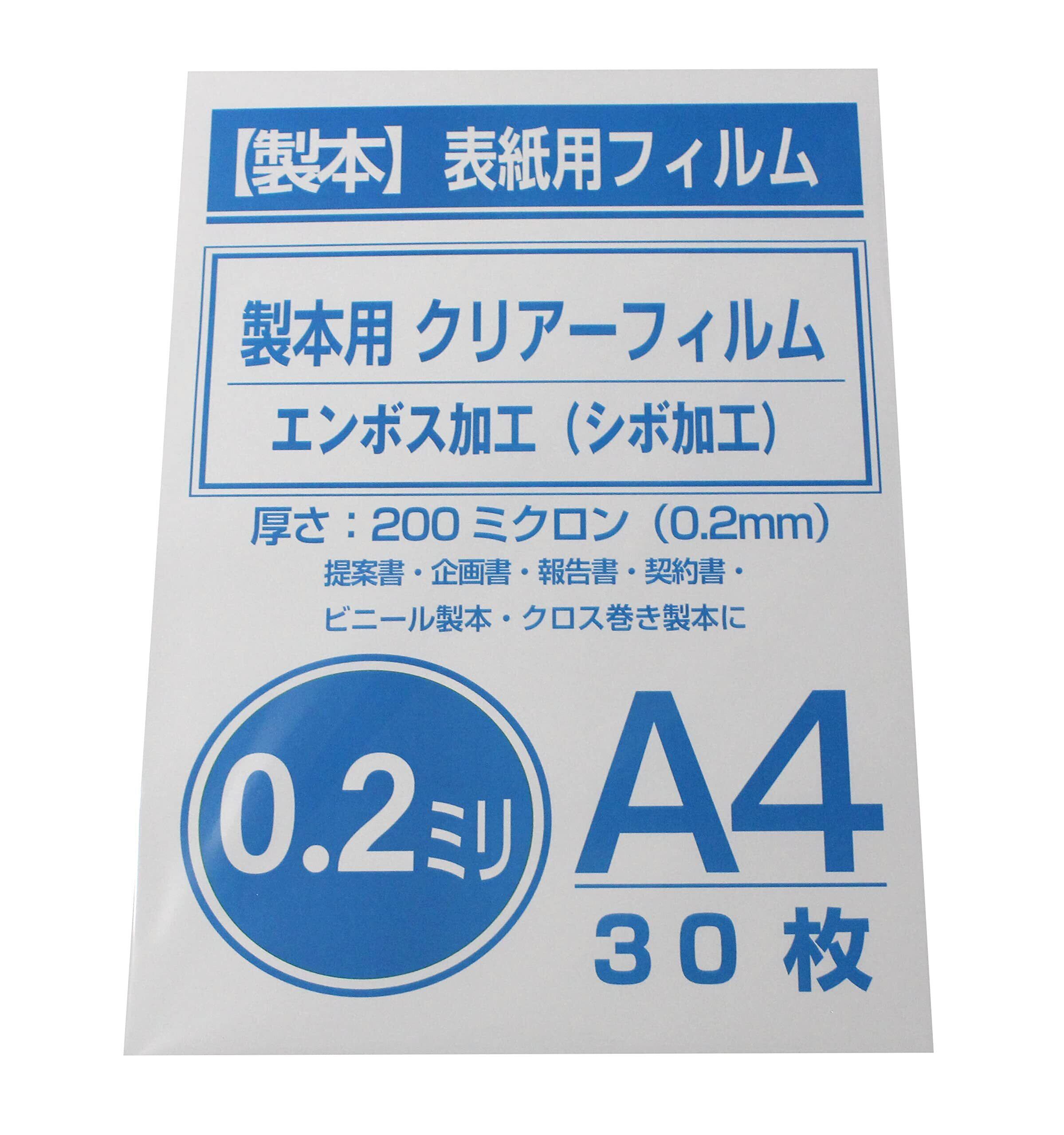 製本用 表紙用フィルム エンボス加工(シボ付き加工)0.2mm A4 カバー 表紙 (30枚)