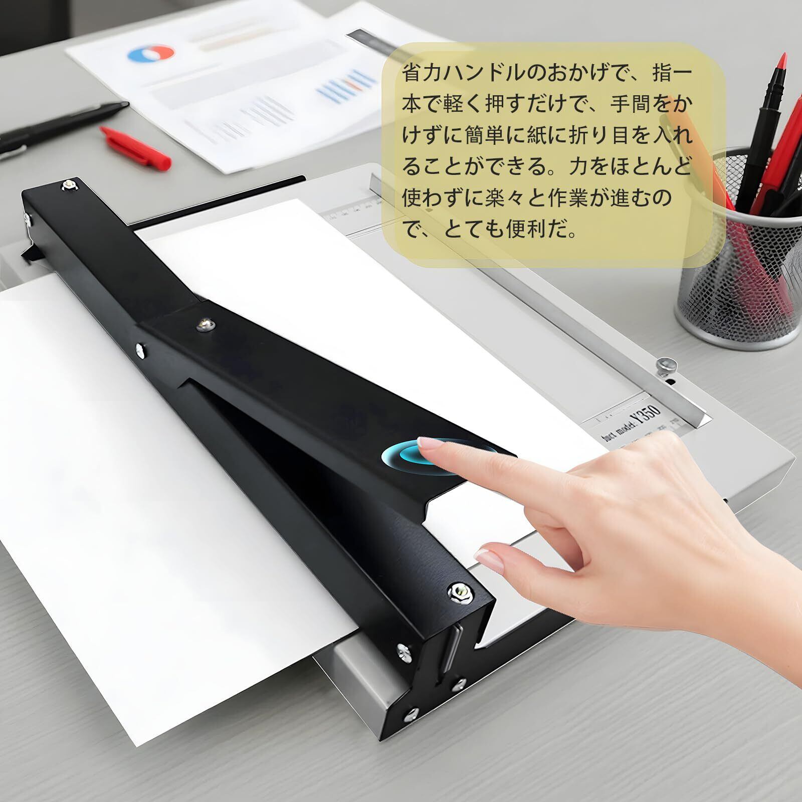 【高精度折り目生成】このマーキングプレス機は22cmのスケールが付属し、用紙の位置を正確に位置決めできます。厚さ5mm以内の用紙に対応し、最大長さ350mm、深さ0.8mmの綺麗で鮮明な折り目を作ることができ、折り後の用紙も平らで美しく仕上がります。