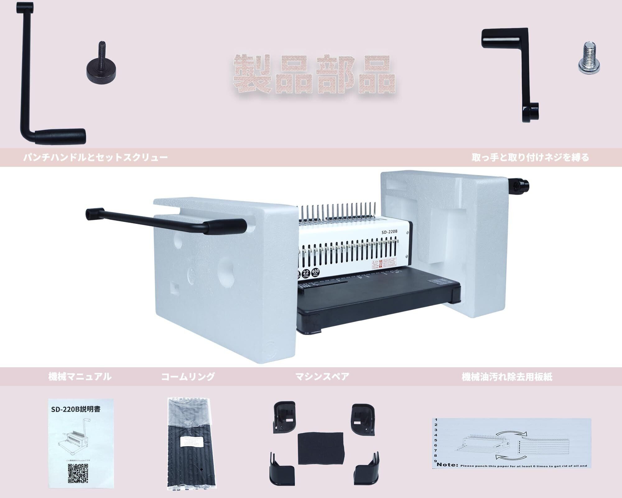 【人気商品】SD-220B 製本機 コームリング 角穴 1~21穴まで調整可能 パンチングと製本が一体化 穴あけパンチ A4、A5、B5用紙対応 22枚パンチ可能 手動 強力 省力 ルーズリーフ製本 学校、企業、家庭、オフィス用