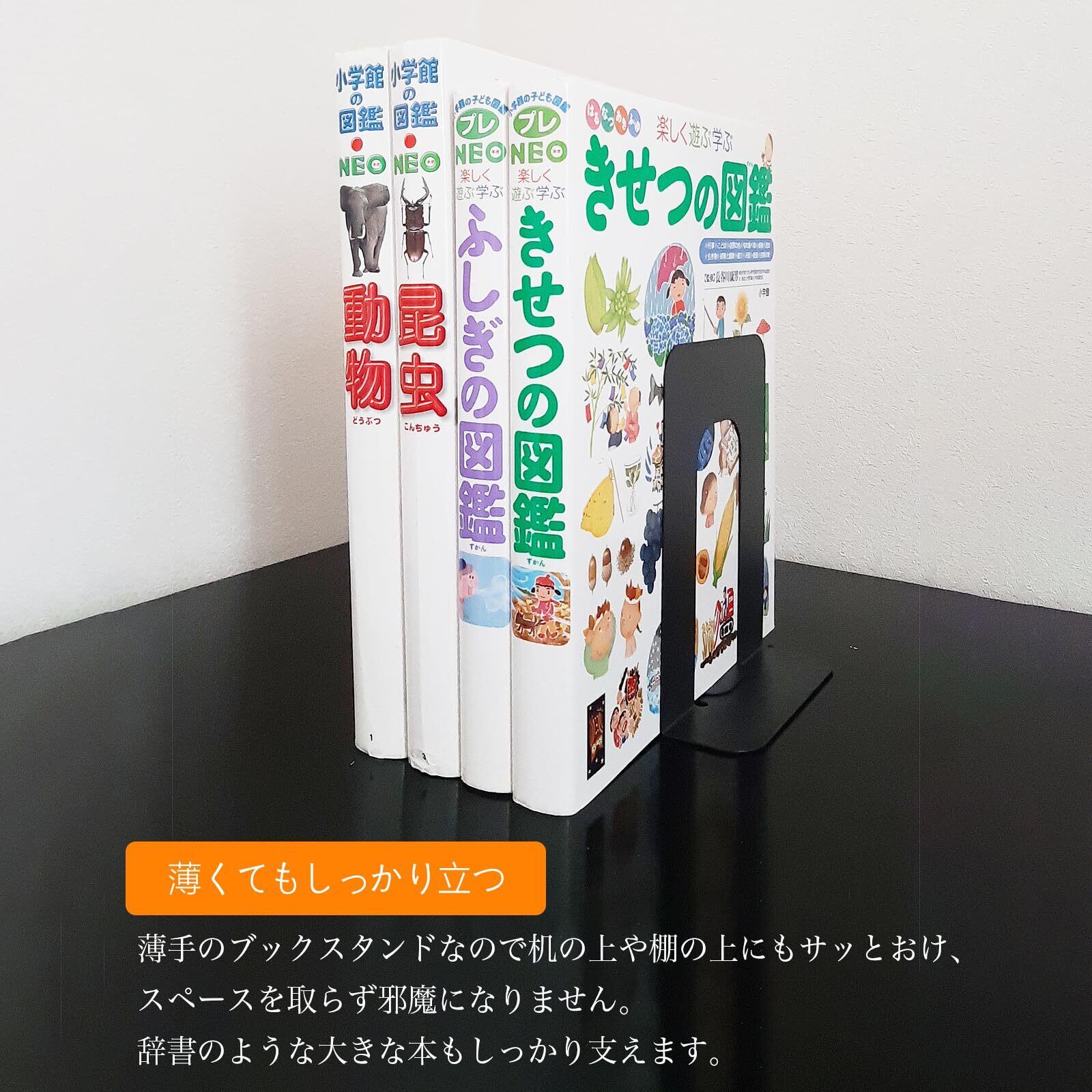 ブックエンド 4個セット 卓上 倒れない 金属製 滑り止め付 高さ16㎝ 中サイズ ブックスタンド 本立て T字 黒