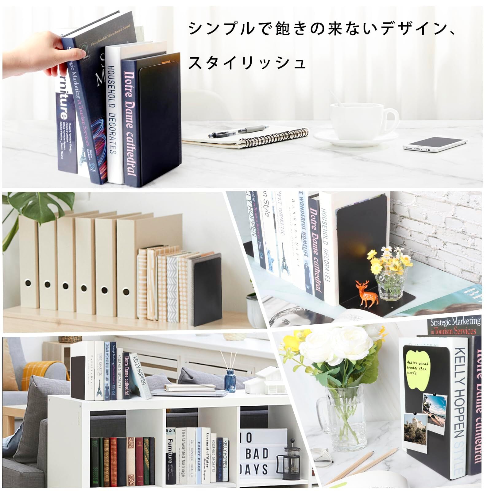 良い耐久性:厚いスチール製で、丈夫で辞書みたいな分厚い本がいっぱい入れても変形しにくく耐久性が良いです。底面に滑り止めのゴムが四つ付いていて倒れにくいだけではなく、摩擦を減らして机に置いたとき音が小さくなります。音に驚かされるのを心配しないでください。
