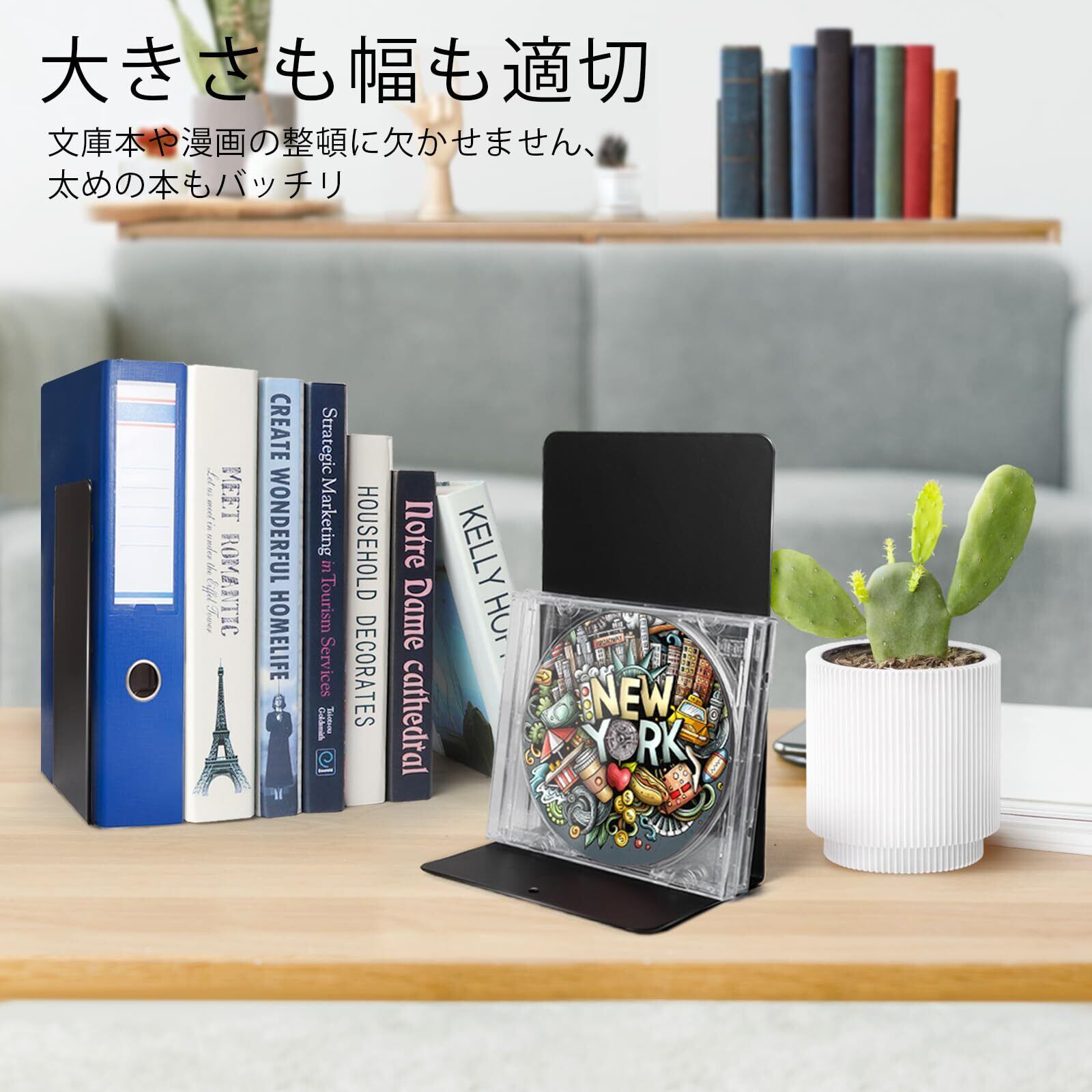 【特価セール】本立て 黒 ブックエンド ブラック 倒れない滑り止め付き デスク整理 2セット(4枚入り)文房具 変形しにくい事務用品 新聞 ファイルCD 辞書 雑誌 書類入れ 多機能のブックスタンド,高さ20㎝