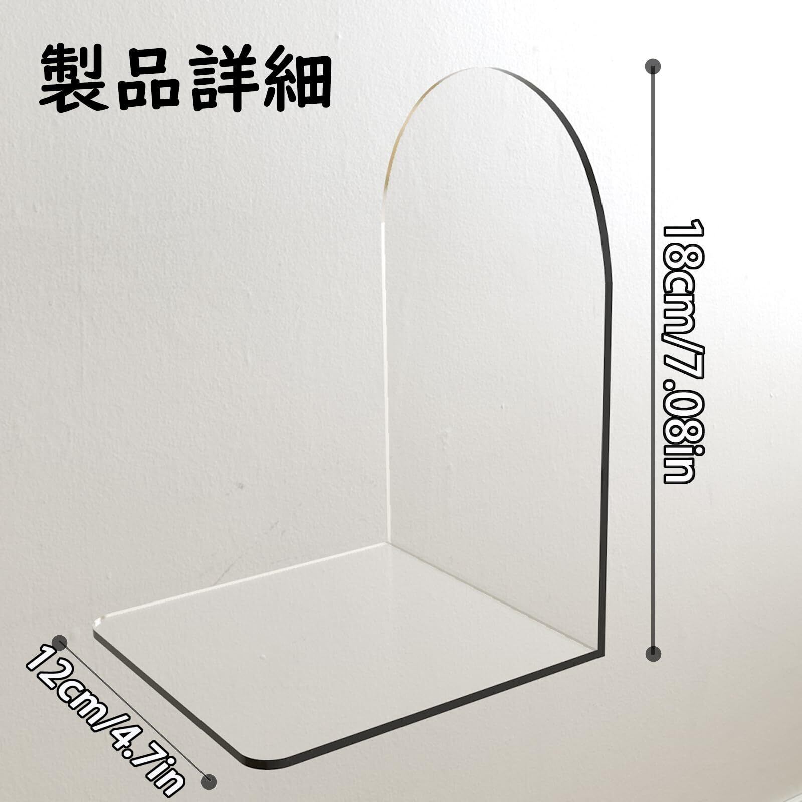 MerryNine 透明L型アクリルブックエンド [高級感のある消える収納|机のズレ防止設計|シンプルマルチユース] 100%クリアアクリル素材 保護フィルム剥がし後は水晶のような透明性を発揮! 本の表紙を邪魔せず、インテリアに溶け込む洗練デザイン。 シリコン+溝加工のW滑り止め 底面にシリコンパッドを内蔵+溝付き構造で、木製/ガラス/樹脂製デスクに強力密着。1kg耐荷重で百科事典も安定固定。 お子様の学習机に最適 角の丸み処理&非刺激性素材。シリコンパッドが机表面を傷から守り、子供が自分で本を整理する習慣づけをサポート。 マルチユース収納アイテム 本立てはもちろん、タブレットスタンド・ファイル整理トレイ・キッチンレシピホルダーとしても活躍。 5秒メンテナンス アルコール拭き可能な耐汚れ加工。ホコリが目立ちにくい透明性で、常に清潔な見た目を維持。 セット内容 ・L型ブックエンド(約H18×W12cm)×2個 ・シリコン滑り止めパッド×8個 こんな方へおすすめ! デスク周りをスッキリ見せたい 子供に安全な収納グッズを探している 頻繁に本を取り出すオフィス環境 実用的な贈り物を選びたい ※注意事項:保護フィルムは配送中のキズ防止用です。必ず両面を剥がしてからご使用ください。シリコンパッドは水洗い可能ですが、剥がすと再装着できません。