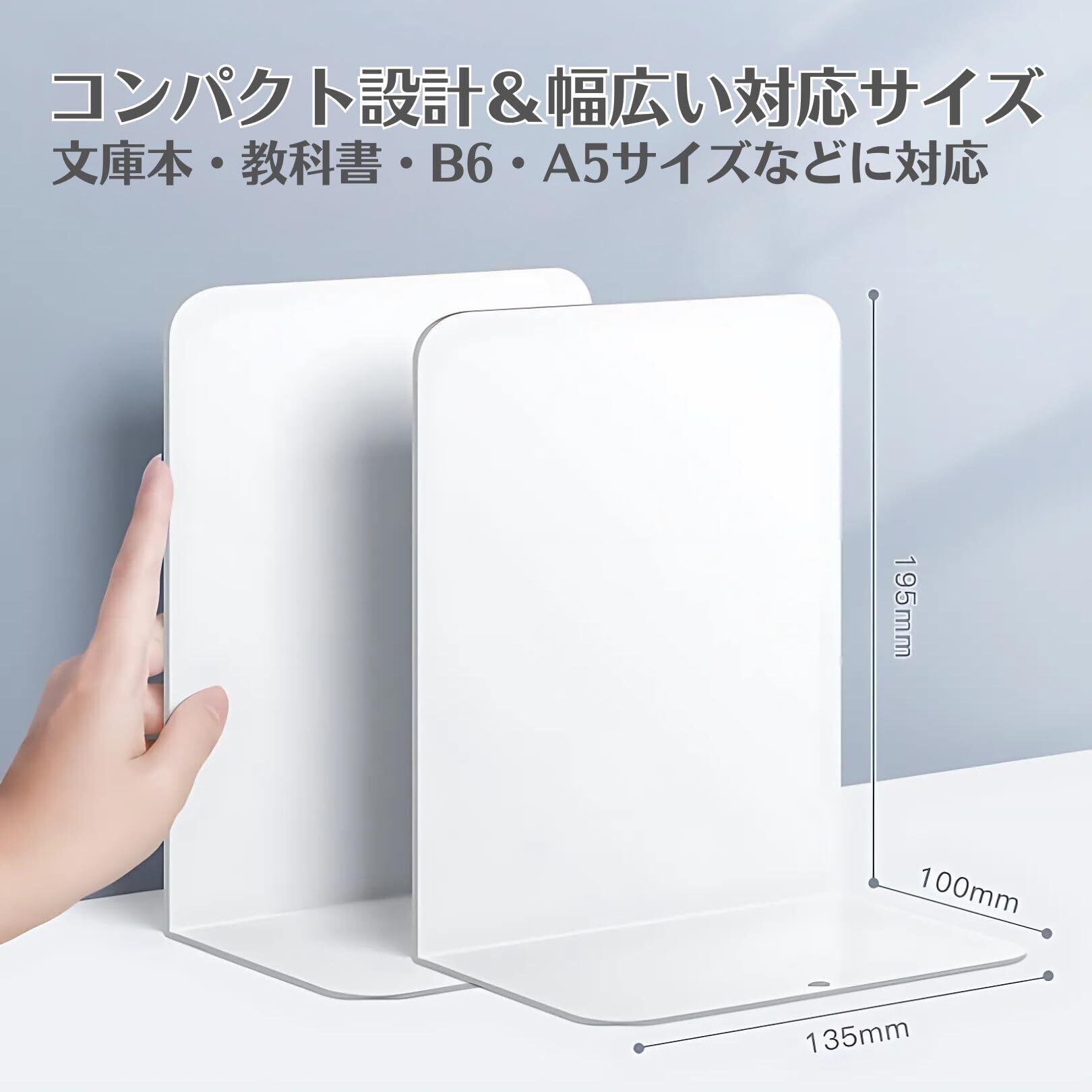 【コンパクト設計&幅広い対応サイズ】サイズ:約100×135×195mm。使わない時は重ねて省スペース収納可。文庫本・教科書・B6・A5サイズなどにぴったりです。
