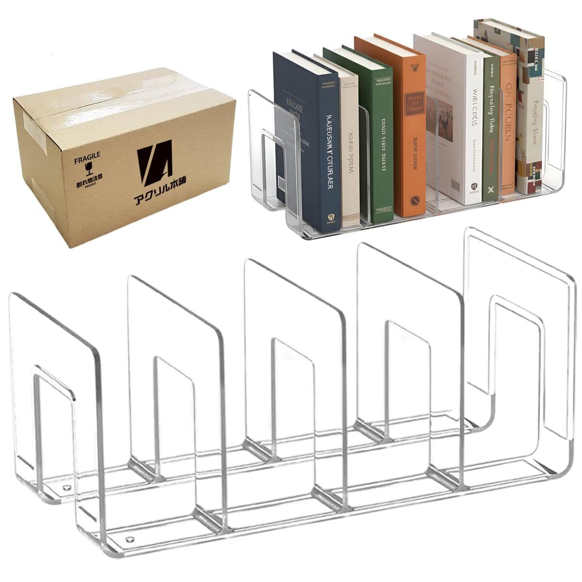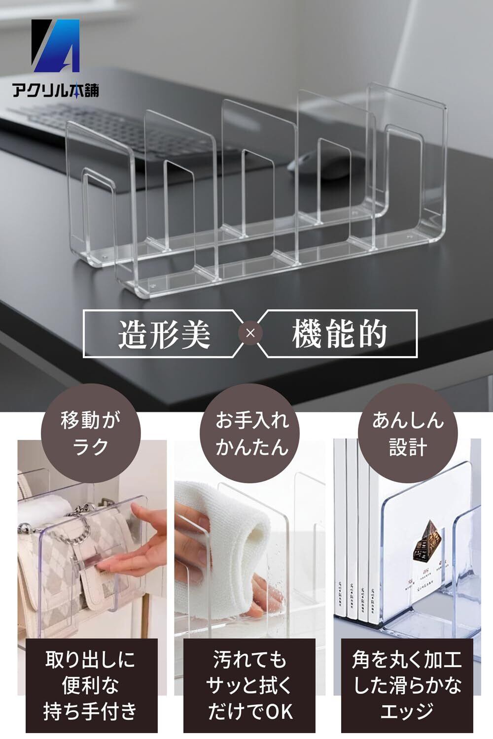 アクリル本舗 ブックスタンド 卓上 本立て 4仕切り クリア 透明 倒れない プラスチック製 雑誌 書類 A4 整理 収納 ラック (2個セット)