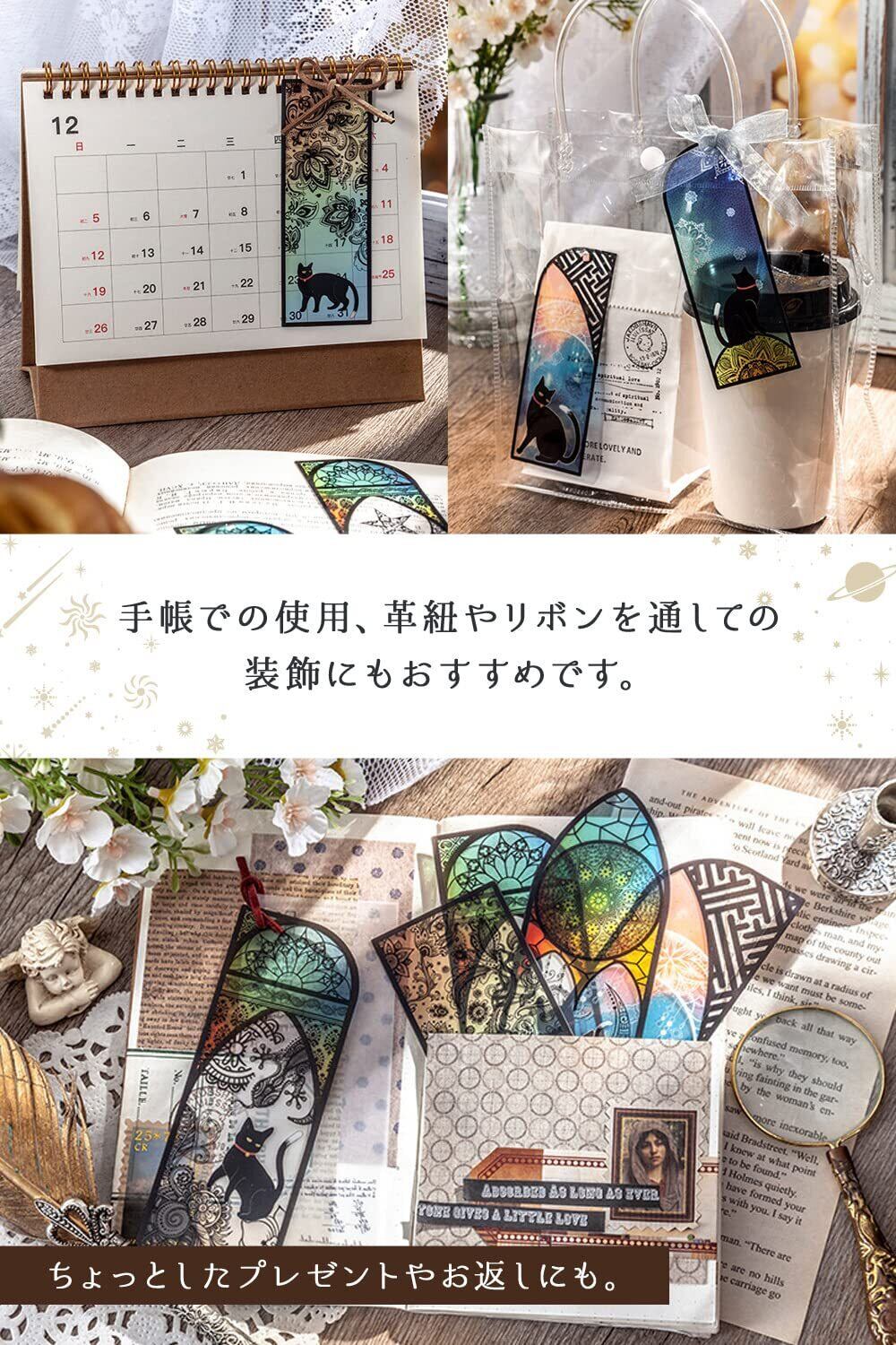 (インタートイボ) INTERTOYBO しおり 栞 ブックマーク 猫 ステンドグラス プラスチック おしゃれ かわいい 18枚 セット 本 (18枚/18種類)