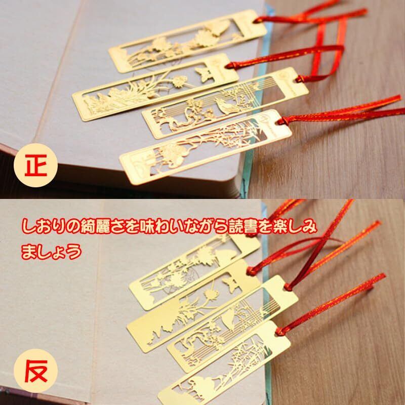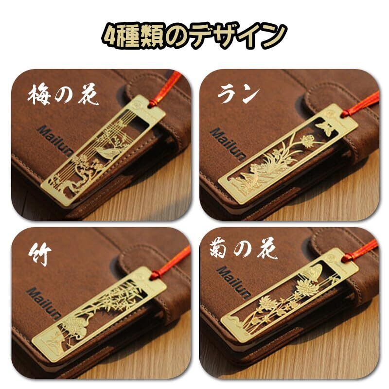 しおり 本 金属 栞 bookmark ブックマーカー おしゃれ ステンレスし 四君子 梅蘭竹菊 金属/読書/ステンレス製/ブックマーク伝統古風シリーズ 4pcs