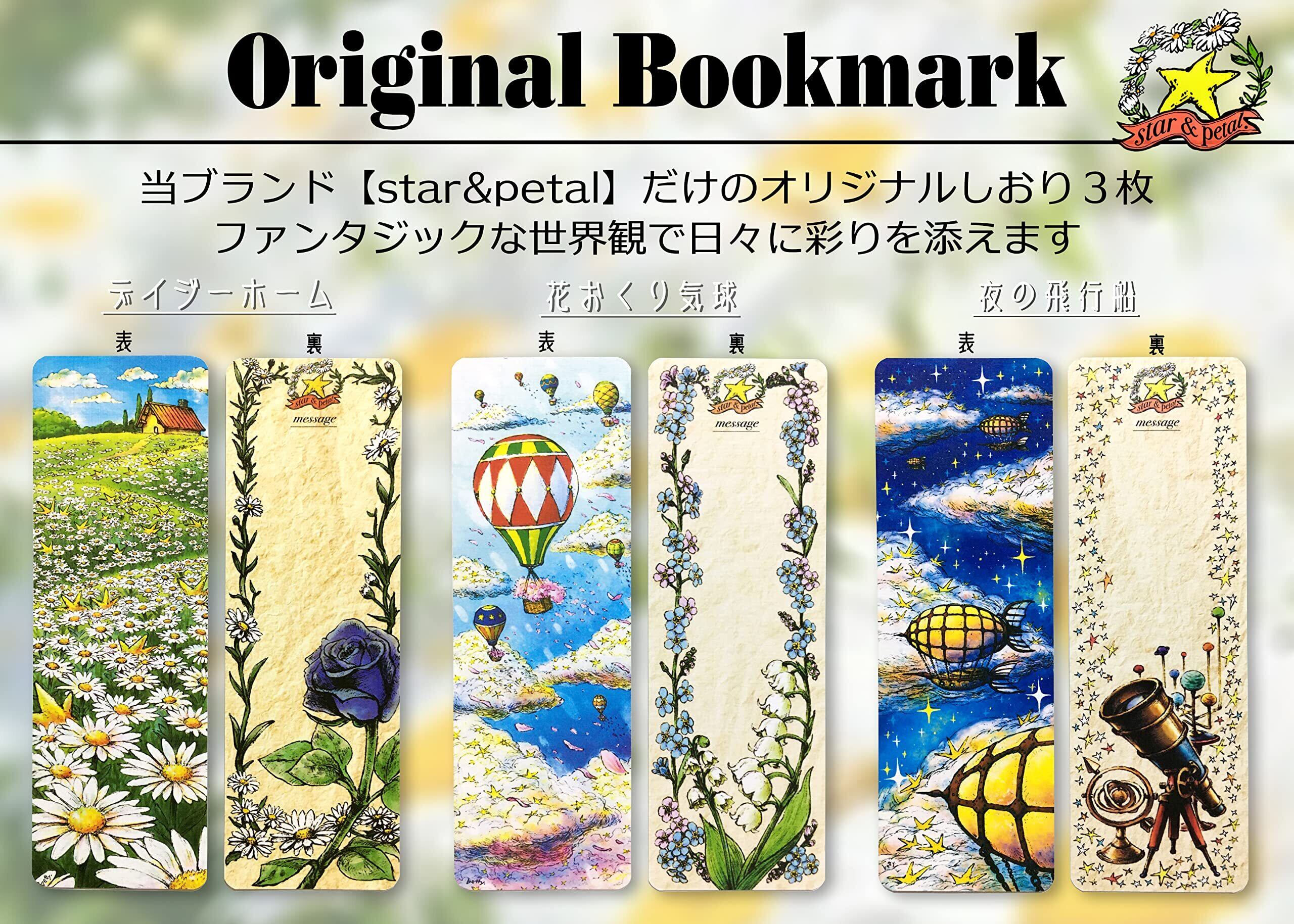 【オリジナルしおり】『star&petalオリジナルしおり』は他にはない幻想的な絵柄のしおりで、子供から大人まで楽しんでいただけます。サイズは幅4cm×12.5cmなので文庫サイズにも収まり、さまざまな本にご使用できます。材質は最上級紙『エキストラリネン』を使用しようしており、まるで毛織りの表面のような質感。手触りも良いです。