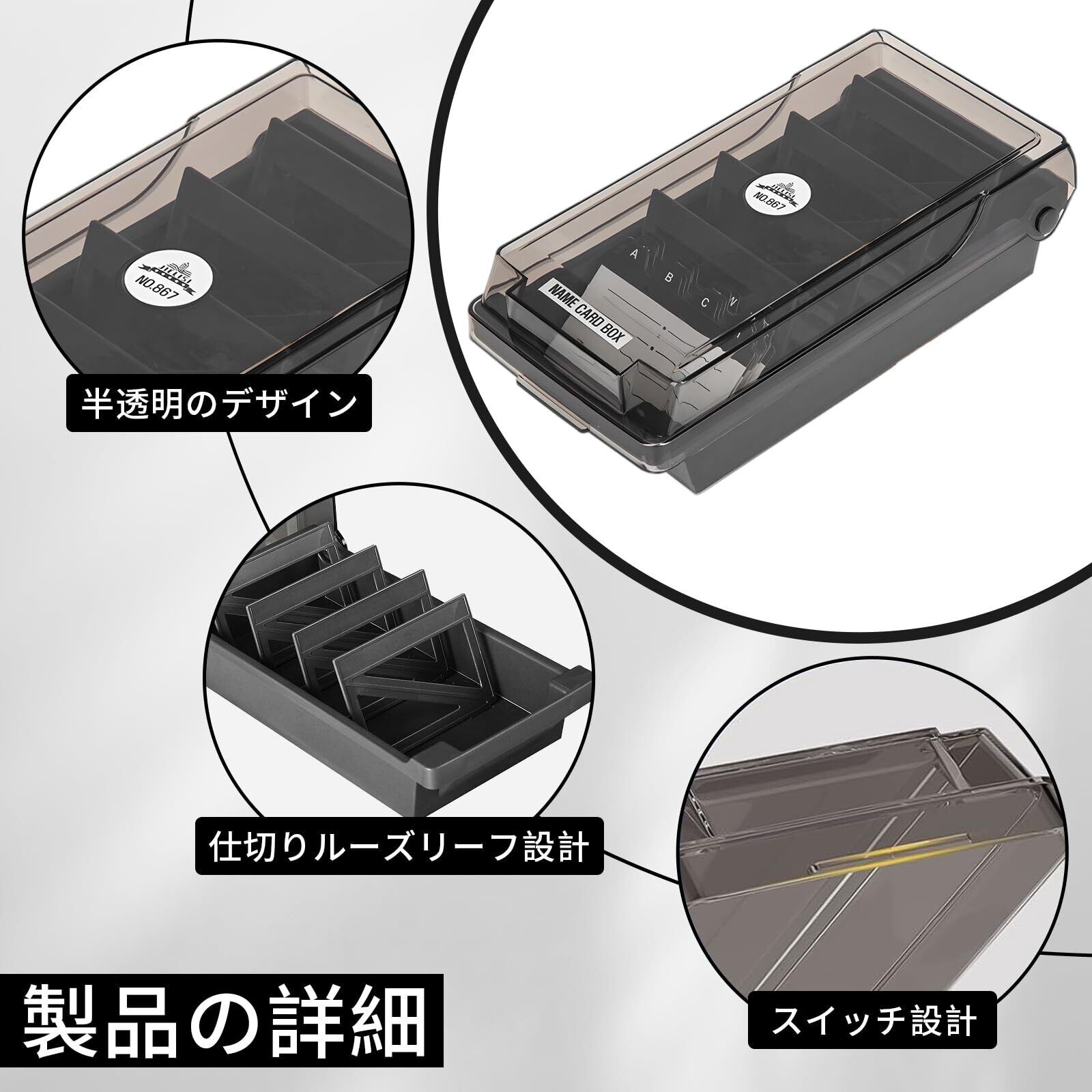 名刺整理箱 名刺ホルダー 収容枚数500枚 名刺ケース 名刺入れ 大容量 卓上 カードケース 透明蓋付き 仕切り板 分類管理 整理 名刺整理器 名刺立て