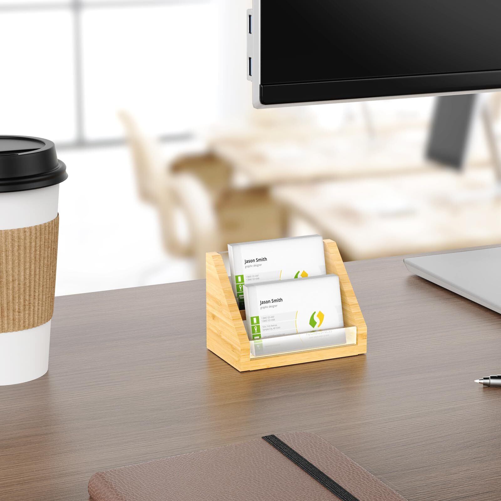 NiOffice 名刺立て 名刺ホルダー 名刺スタンド 木製×アクリル ショップカード立て 大容量 受付・オフィス・展示会用 事務用品 横置き