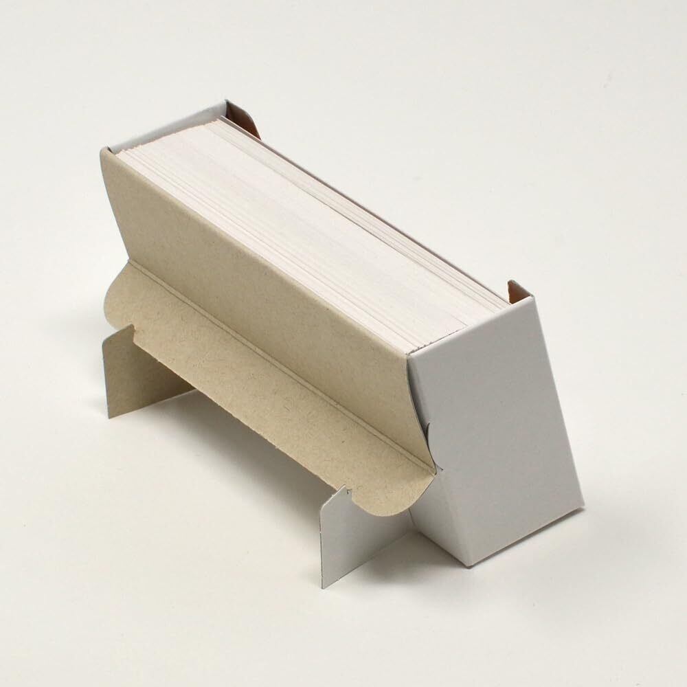 ●紙製の名刺箱がカードスタンドに組み替えられるハイブリッドな商品です。
