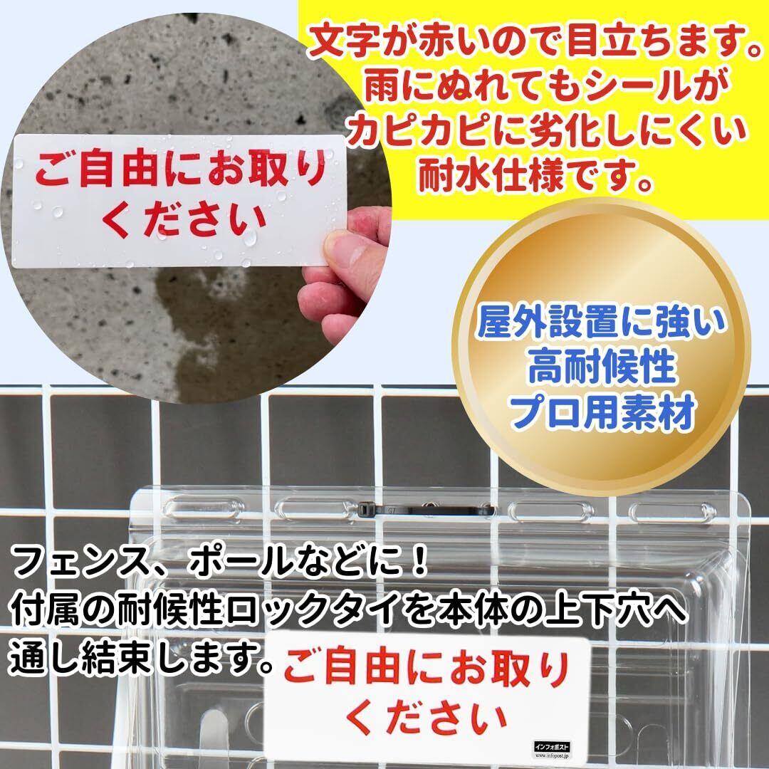 【新着商品】チラシパック A4サイズ カタログケース 屋外用チラシケース 透明ボックス 軽量 超カンタン取り付け 高耐久の目立つ赤色ステッカー付 高耐候性バンド2本付 31040