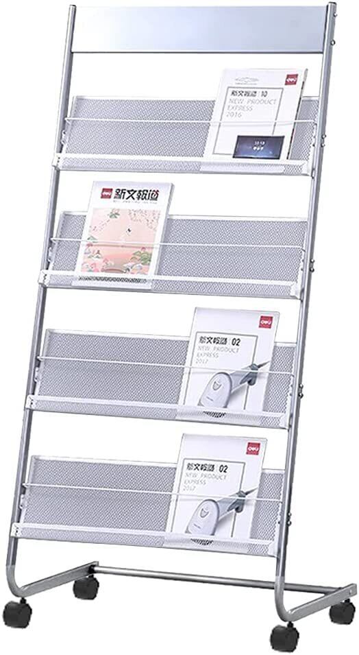 【人気商品】パンフレットスタンド カタログ スタンド マガジンラック 4段 棚 大容量 スリム おしゃれ キャスター付 スチール製 折り畳み式【マガジン/パンフレット/カタログ/チラシ/リーフレット/雑誌 ラック フロアスタンディング】省スペース 業務用 展示会 店舗販促 待合室 オフィス (4段収納(車輪付き))