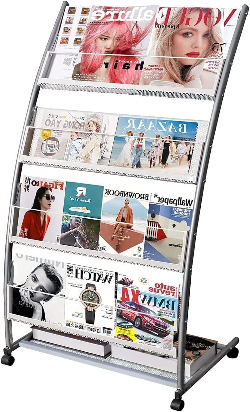 【2022最新】マガジンラック 4段 マガジンスタンド キャスター付 パンフレットラック 大容量 待合室 図書館 店舗 業務販促用