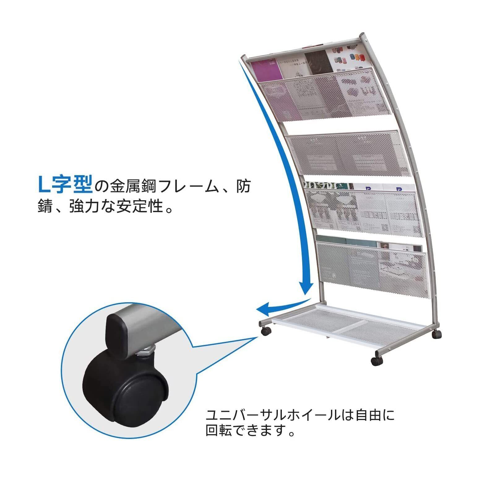 マガジンラック 4段 マガジンスタンド キャスター付 パンフレットラック 大容量 待合室 図書館 店舗 業務販促用