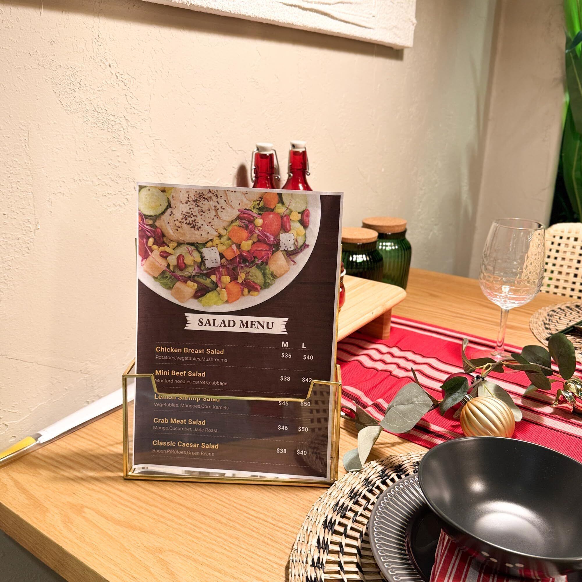 専門的なディスプレイとして設計され、情報資料をスタイリッシュに提示することができます。このホルダーは、オフィスやビジネス環境でのプレゼンテーションに最適なパンフレット立てです。