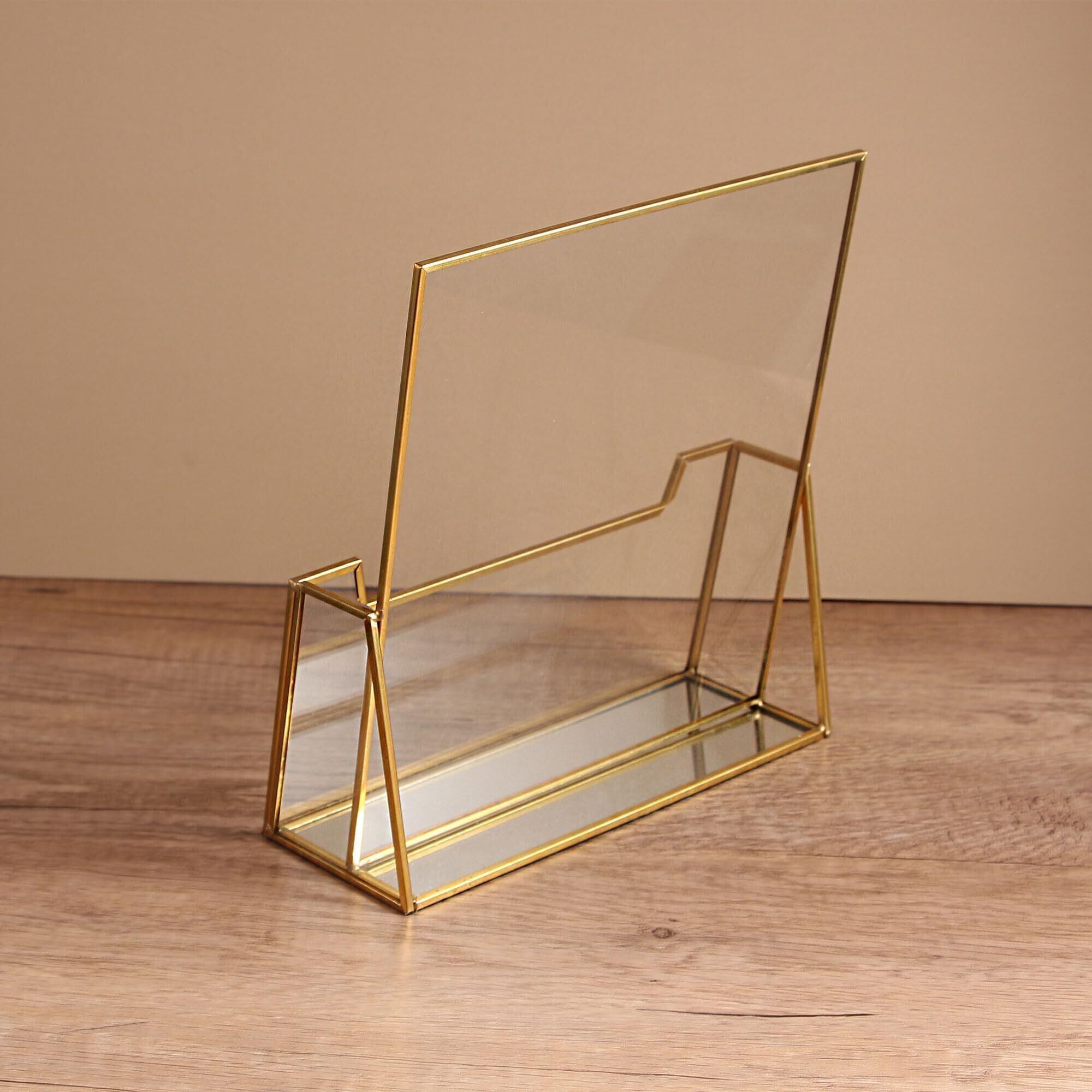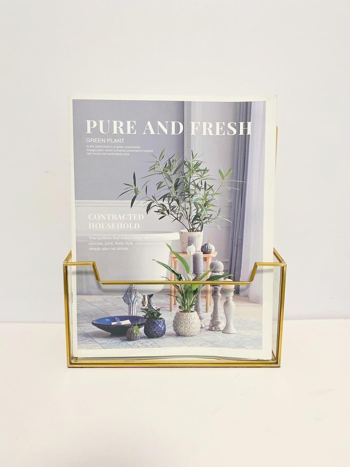 Feyarl カタログケース カタログ・POP広告スタンド 透明 縦型 A4/A5 ガラス 真鍮 ハガキホルダー 卓上 パンフレット立て おしゃれ カタログラック ゴールド