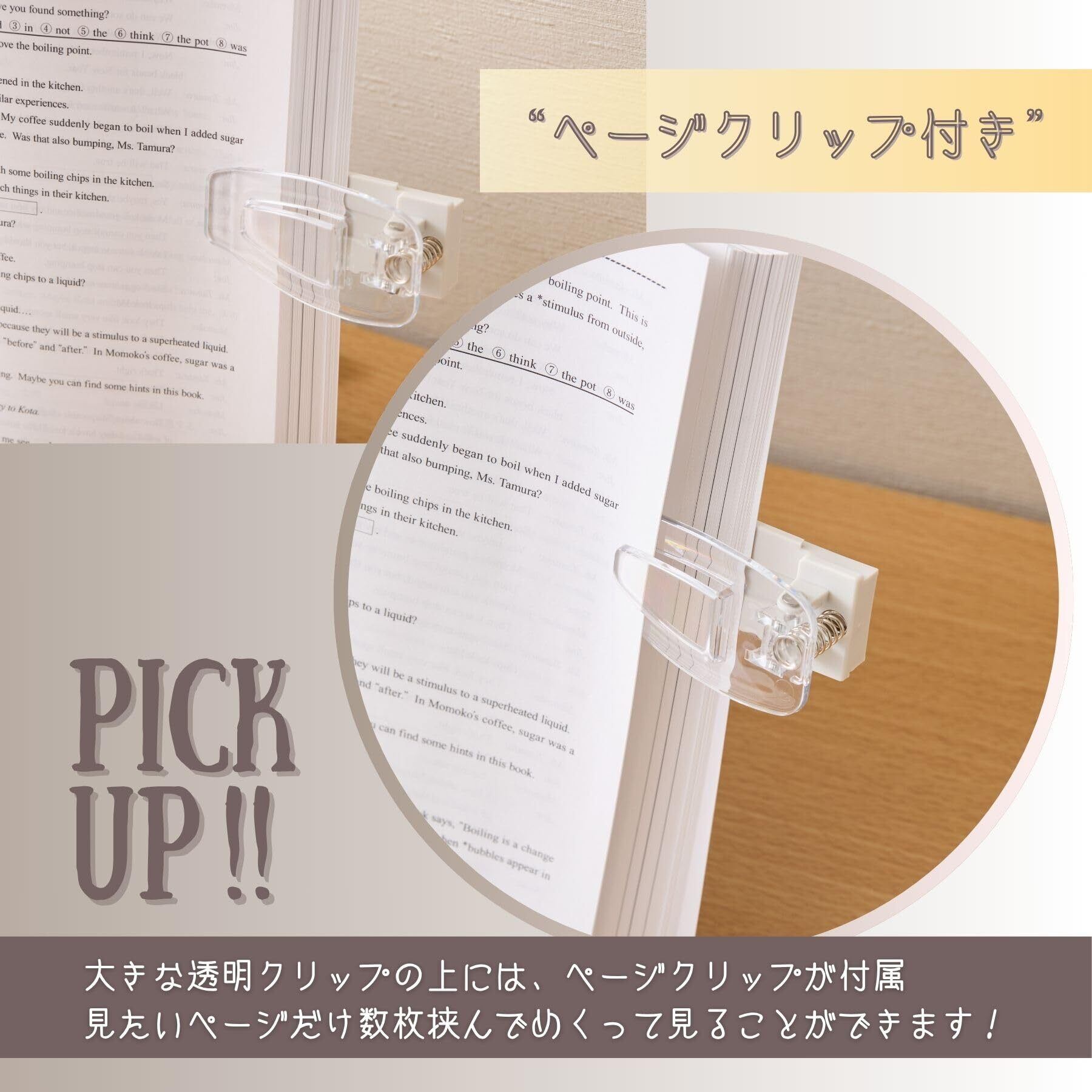 【ページクリップ付き】大きな透明クリップで分厚い本もしっかり固定できる!