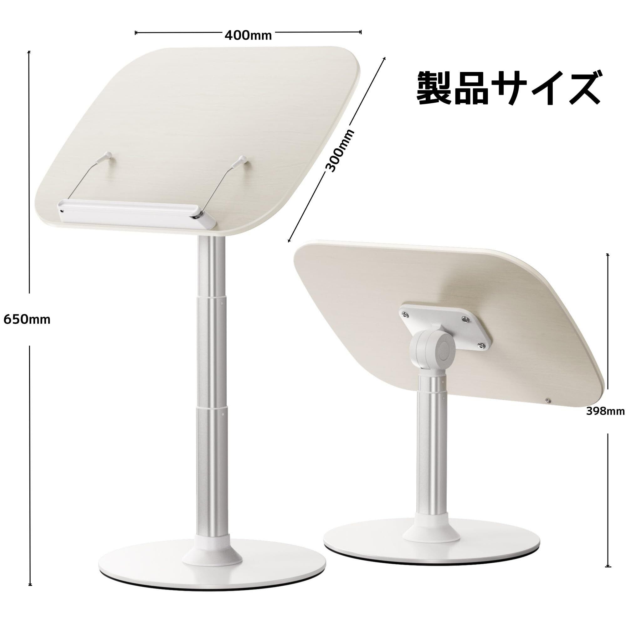 【高い安定性・快適サポート】書見台のパネルには環境に優しい木製パネルを使用し、支柱はアルミニウム合金製、底部は超硬鋼にシリコンパッドの滑り止め付きで、安定感抜群です。ブックホルダー底部には球状のボールデザインが施されており、ページが皺になるのを防ぎます。拡大されたパネルサイズは40×30cmで、通常の本はもちろん、絵画ボード、タブレット、ノートパソコンも楽々置けます。組み立ては簡単、すぐにご利用いただけます。
