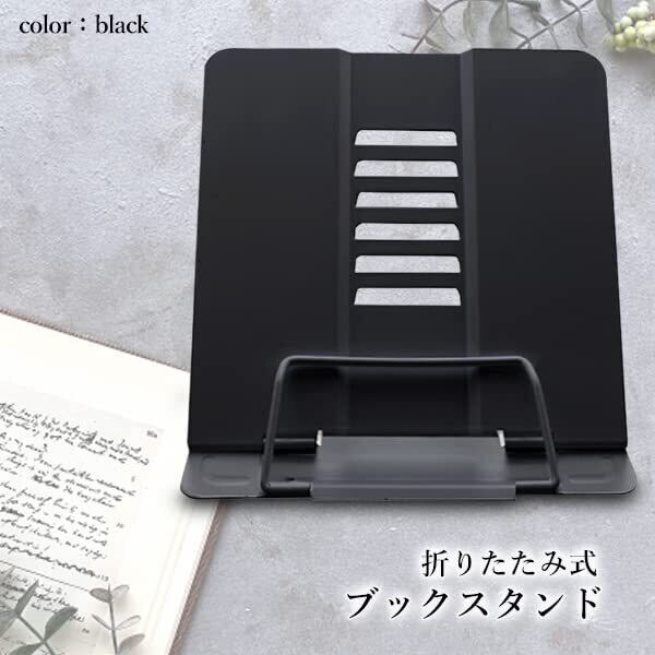 ブックスタンド ブラック おしゃれ 卓上 段 スチール 本立て インテリア 薄型 折りたたみ スタンド 書見台 タブレット