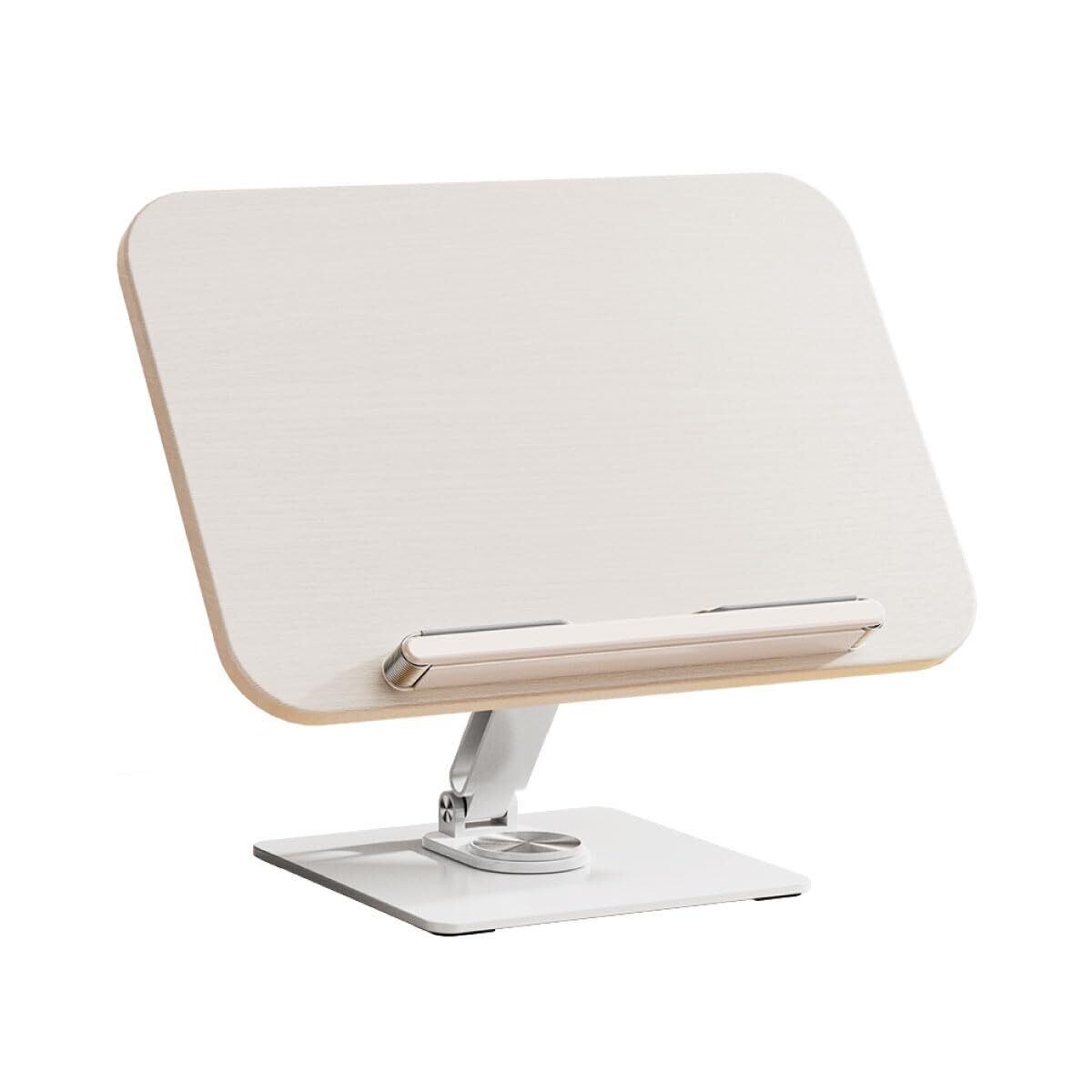 【特価セール】E-WIN [雑誌で紹介されました] ブックスタンド 高さ調整 角度調整 360度回転 PCスタンド タブレットスタンド 木製 ナチュラル インテリア ウッド 姿勢改善 書見台 読書台 本立て スタンド ホワイト 白 耐荷重 MDS-WH
