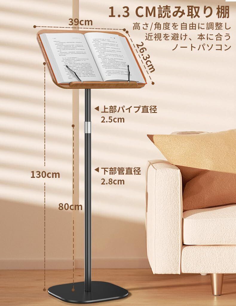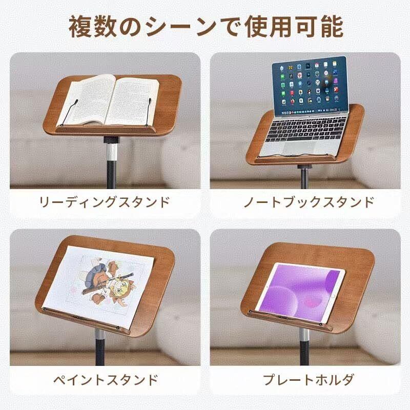 【2022最新】YCHUTUTU読書用ブックスタンド 木製 昇降式 サイドテーブル 54cm-130cm 角度調整 金属構造 台座 書見台 床置き 読書台 木製 ノートパソコン、料理本、製図板、譜面台、傾斜台 タブレット用