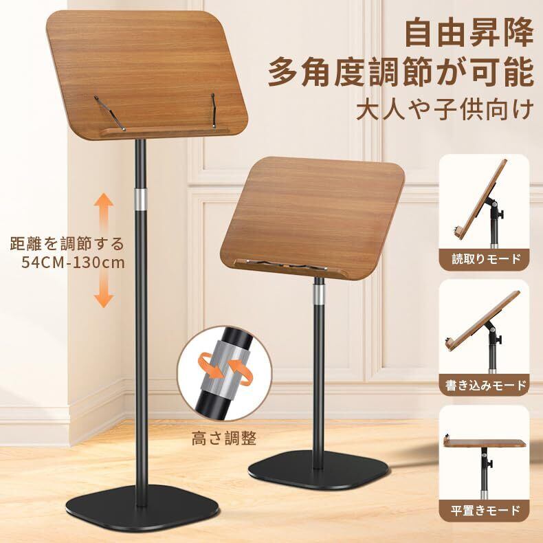 YCHUTUTU読書用ブックスタンド 木製 昇降式 サイドテーブル 54cm-130cm 角度調整 金属構造 台座 書見台 床置き 読書台 木製 ノートパソコン、料理本、製図板、譜面台、傾斜台 タブレット用