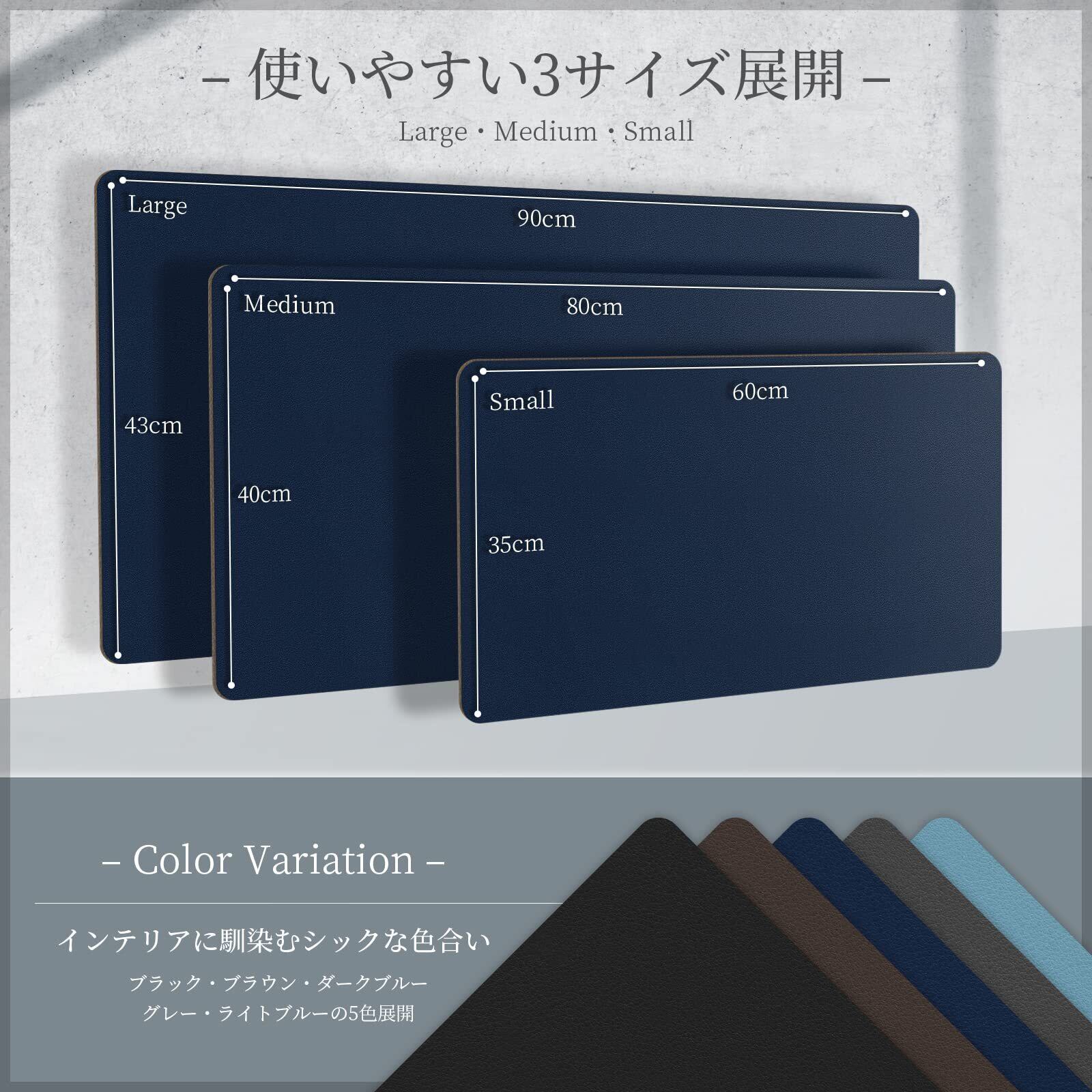 空間を調和するデスクマット 『空間デザイナー監修』 レザー 裏面コルク デスクパッド (ダークブルー, 90cm × 43cm)