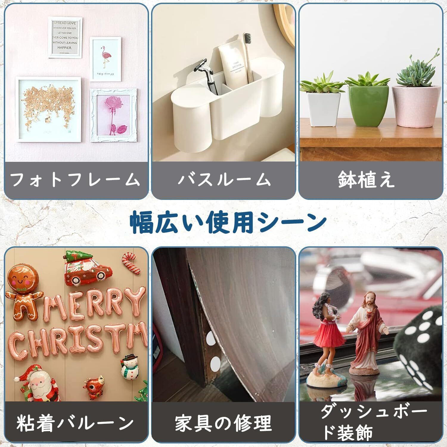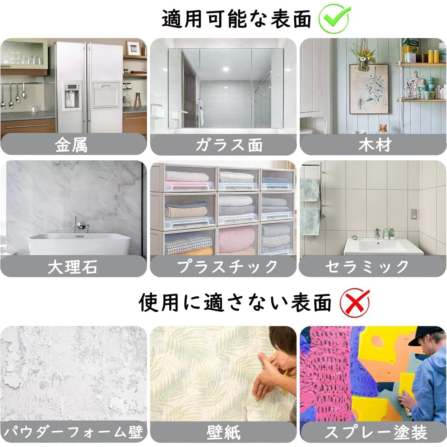【幅広いシーンで活躍】屋内外を問わず、ダイニングテーブルやバーカウンター、会議テーブル、ガーデンテーブルなど様々な場所で使用可能です。テーブルクロスはもちろん、ランナー、マット、ソファカバー、家具カバーなどの固定にも対応。木材・タイル・大理石など多様な素材の表面にしっかり貼り付き、安定感を保ちます。