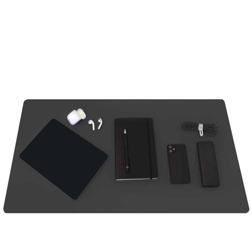 MOTTERU(モッテル) デスクマット すべり止め 耐水 耐熱 オフィス デスク 学習机 マウスパッド 手入れ簡単 丈夫 多機能 デスクを守る オシャレ 上品 PUレザー 薄い 大型 サイズ約750(W)×400(D)mm 無地 スモーキーブラック MOT-DESKMAT-BK