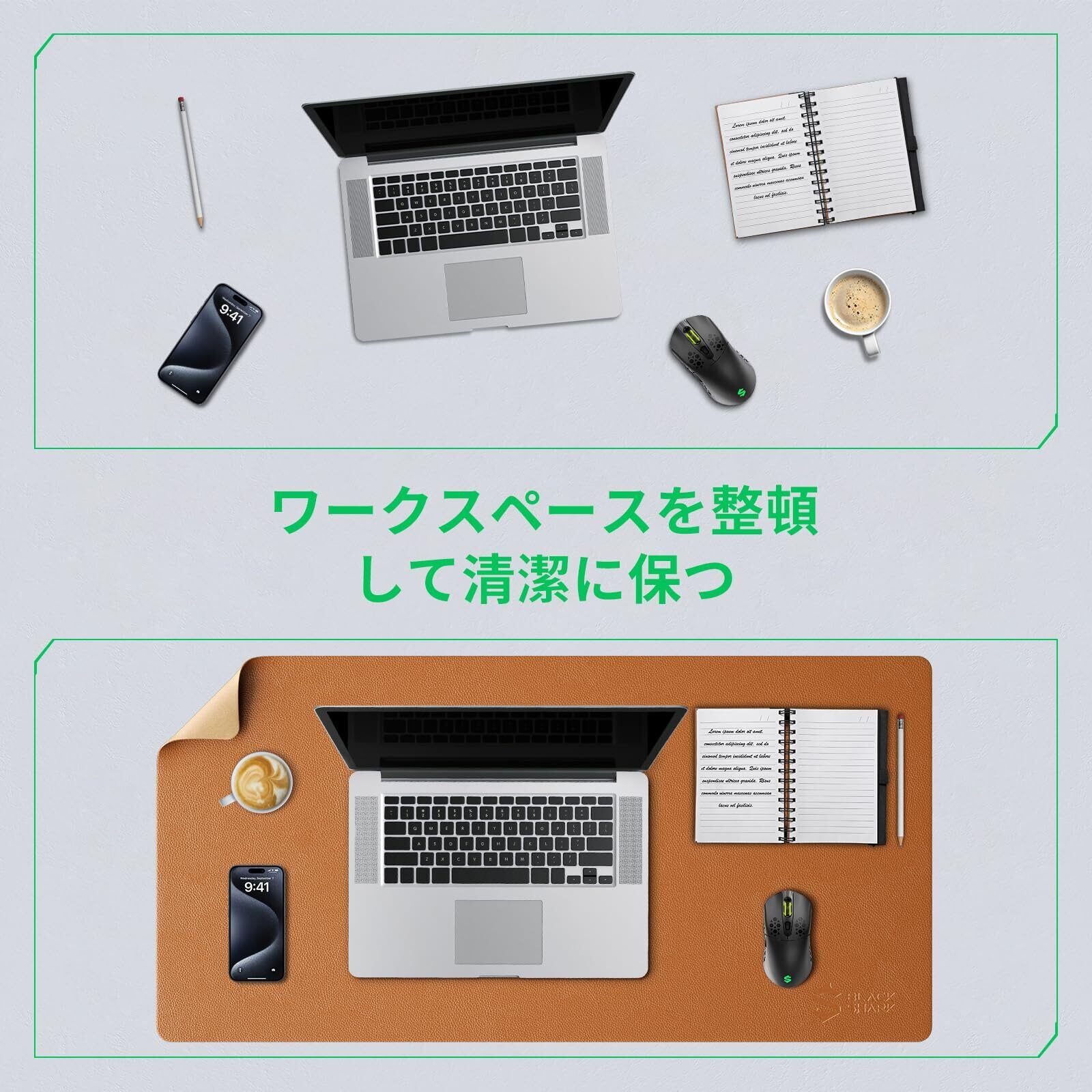 【防水、耐久性、お手入れ簡単】:防水で耐久性のあるPUレザー素材で作られたBlack Shark Manta P9は、収縮や変形に耐え、デスクトップを傷つけ、汚れ、こぼれ、高温、摩耗から長期間保護します。クリーニングは簡単で、湿った布やティッシュでやさしく拭くだけで済みます。
