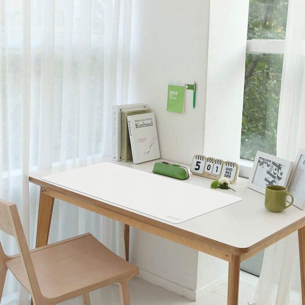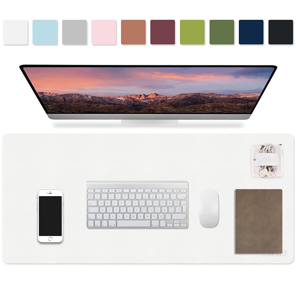 iCasso マウスパッド 白 デスクマット大型 マウスパッド 防水 90x40cm PUレザー デスクパッド おしゃれ 清潔しやすい 裏面滑り止め オフィス/ホーム用 男女兼用(ホワイト)