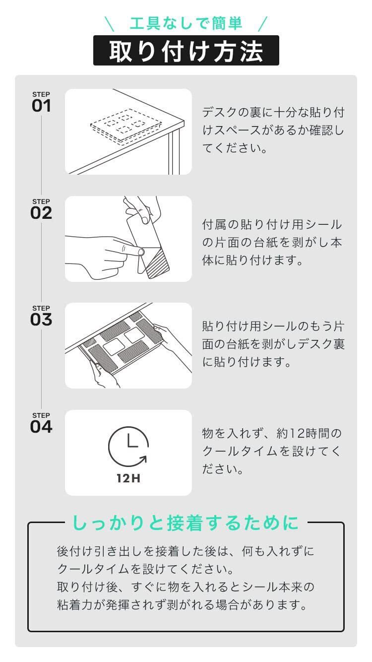 【隙間・スペース活用】デスク、テーブル、机下など様々な場所に設置可能な後付け引き出し、スペースを有効活用!