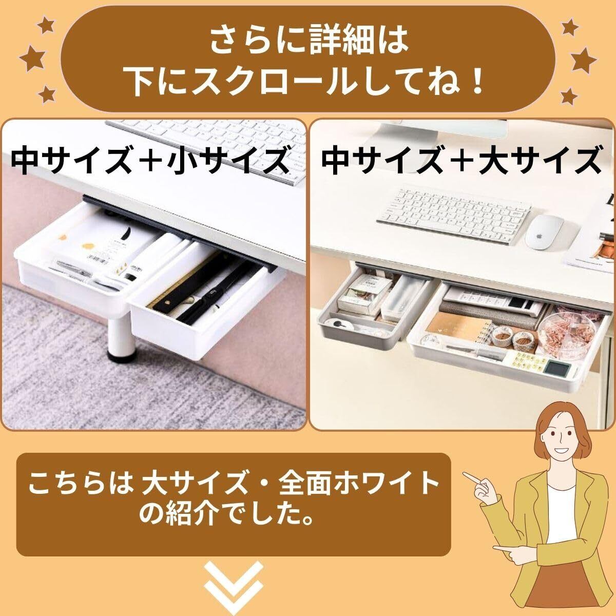 【2022最新】[Kouizam] 国内ブランド 後付け引き出し デスク下 A4対応 収納トレー 引き出し式収納 工具不要 穴開け不要 超強力シール 簡単設置 多用途 収納ボックス 文房具 書類 工具 小物整理 「デッドスペースを有効活用しながら、スッキリ整理して快適な空間作り」テーブルや机の下に簡単設置 オフィス 書斎 リビング キッチン 子供部屋 (全面ホワイト, 大)