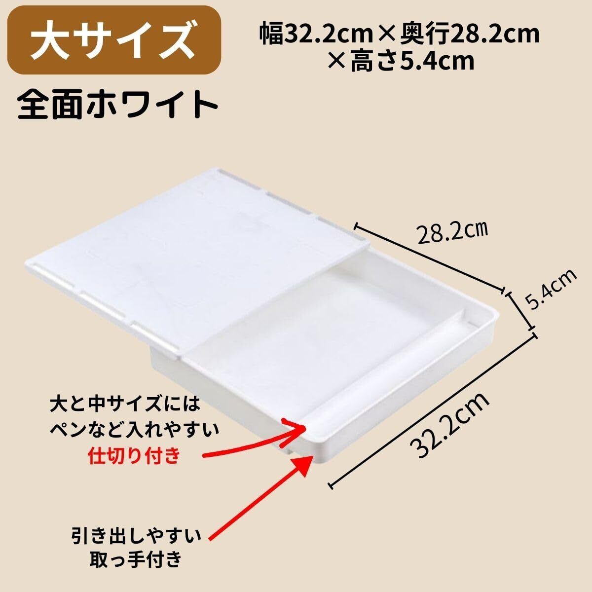 [Kouizam] 国内ブランド 後付け引き出し デスク下 A4対応 収納トレー 引き出し式収納 工具不要 穴開け不要 超強力シール 簡単設置 多用途 収納ボックス 文房具 書類 工具 小物整理 「デッドスペースを有効活用しながら、スッキリ整理して快適な空間作り」テーブルや机の下に簡単設置 オフィス 書斎 リビング キッチン 子供部屋 (全面ホワイト, 大)