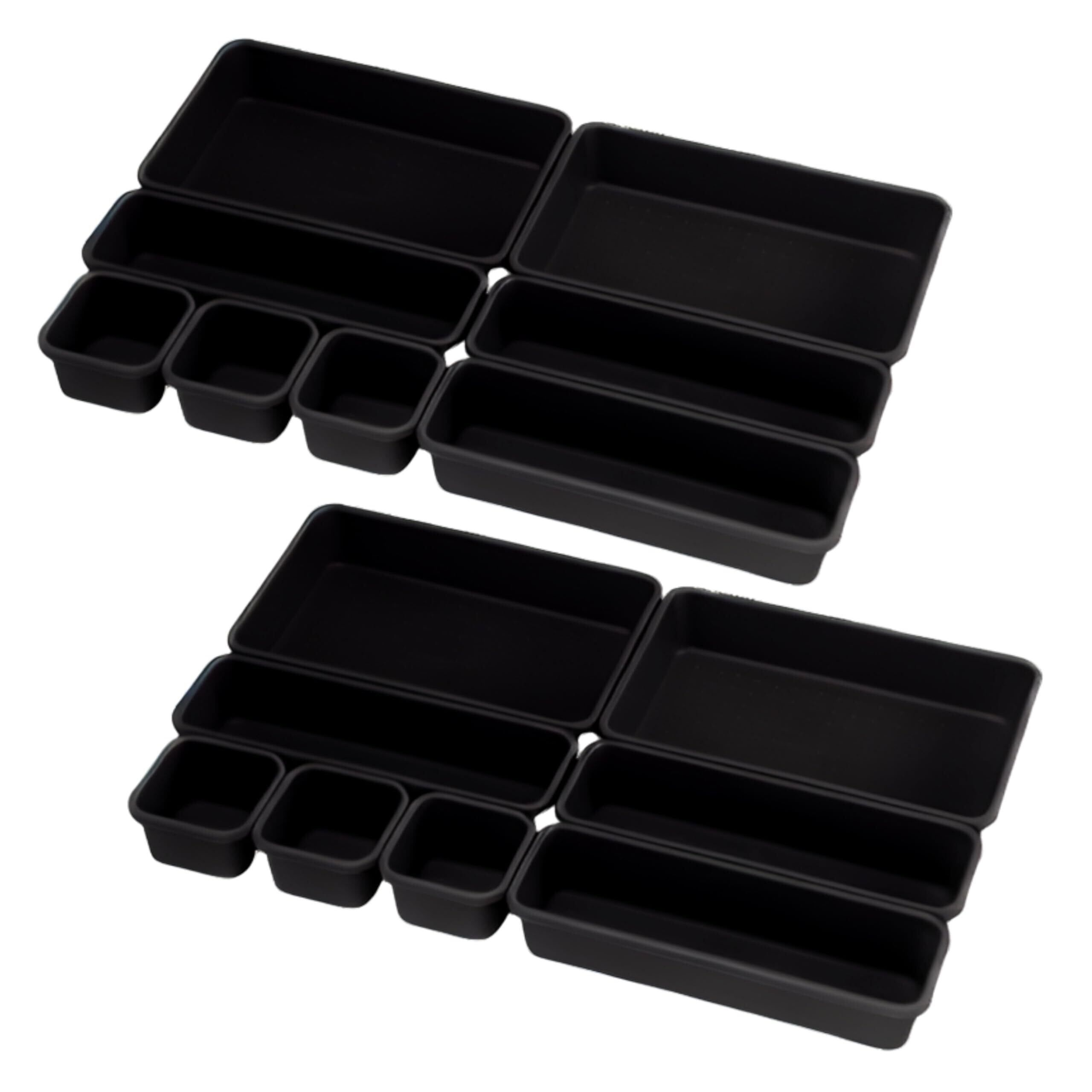 【特価商品】East Leaf 引き出し 仕切りトレー 2セット【大中小16個で定位置化】 デスク 小物 文房具 コスメ 収納 (ブラック)