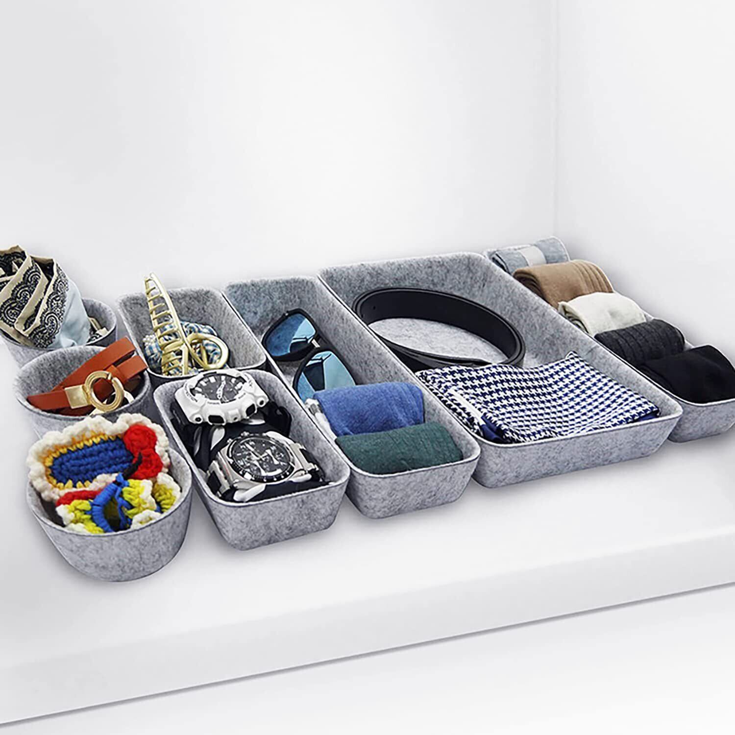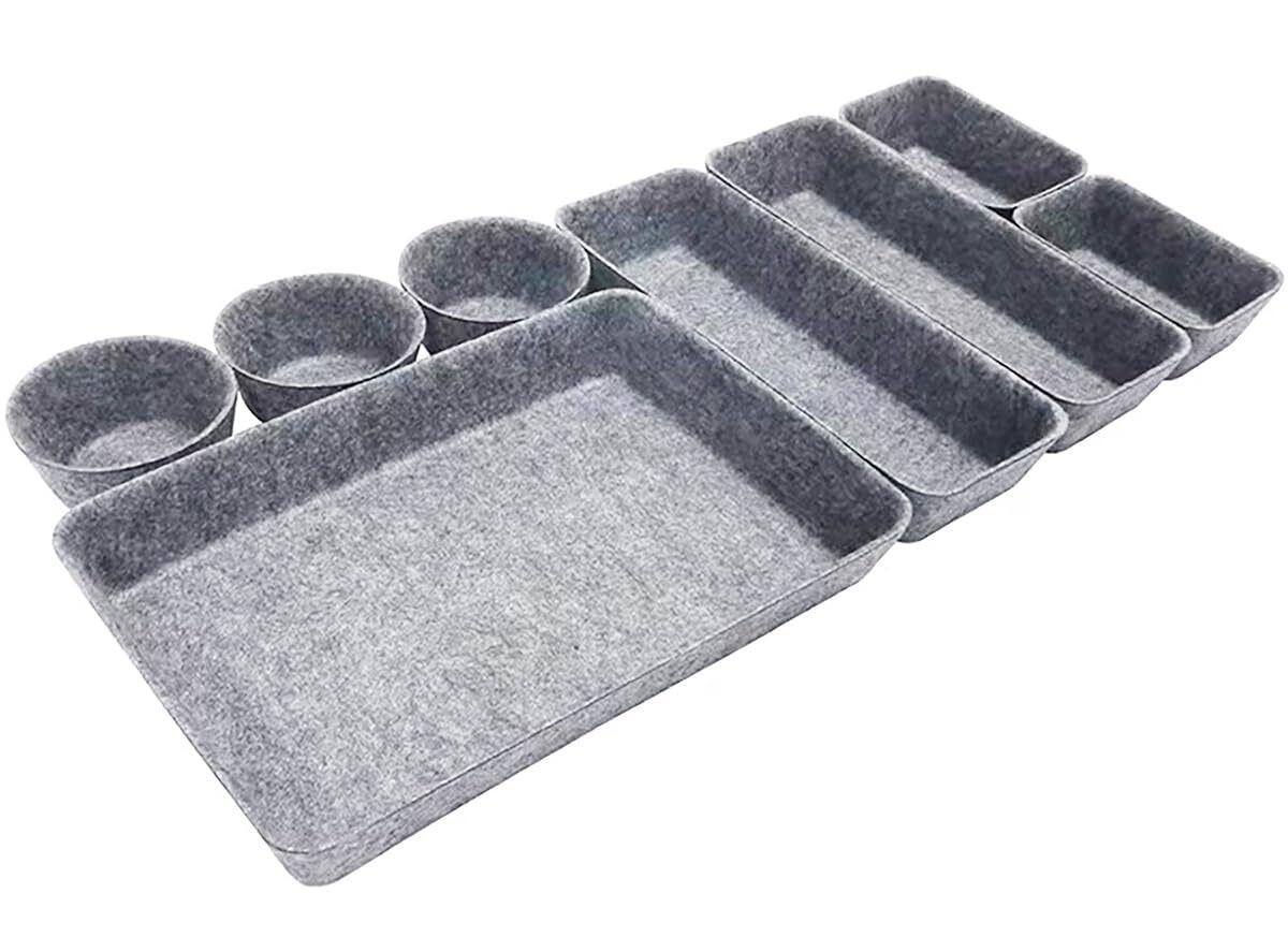 【数量限定】引き出し 仕切り デスクイントレー 整理整頓 フェルト トレー 文房具 小物収納 オフィス デスク 机 多機能 スッキリ収納 (グレー/8個セット)
