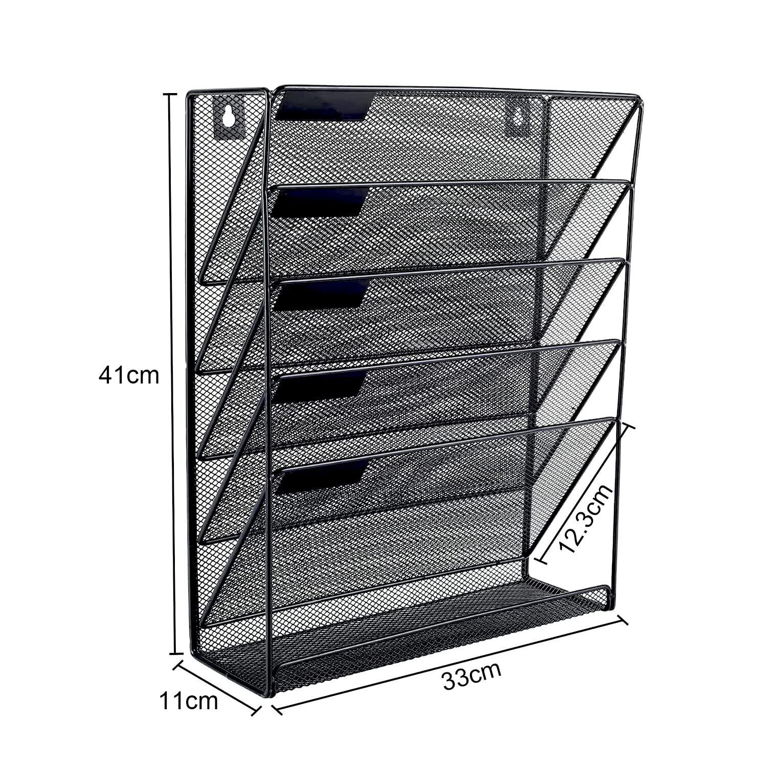 LEEKEY 壁掛けファイルラック 6段 卓上収納ラック 卓上収納可能 ファイルラック 書類トレー メッシュメタル レタートレイ 壁掛け書類ラック 多機能 新聞/雑誌/A4ファイル/フォルダー/書類入れ 収納 ブラック 41cm * 33cm * 11cm