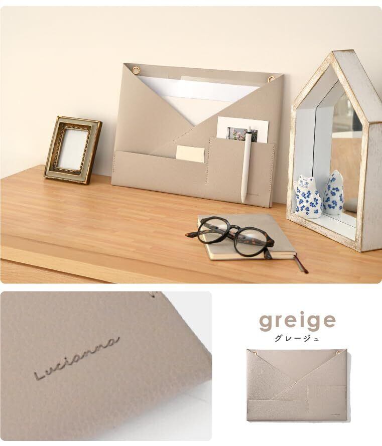 【数量限定】ウォールポケット レターポケット 吊るす 小物も入る 壁掛け a4 書類 カード クリアファイルごと入る (グレージュ)