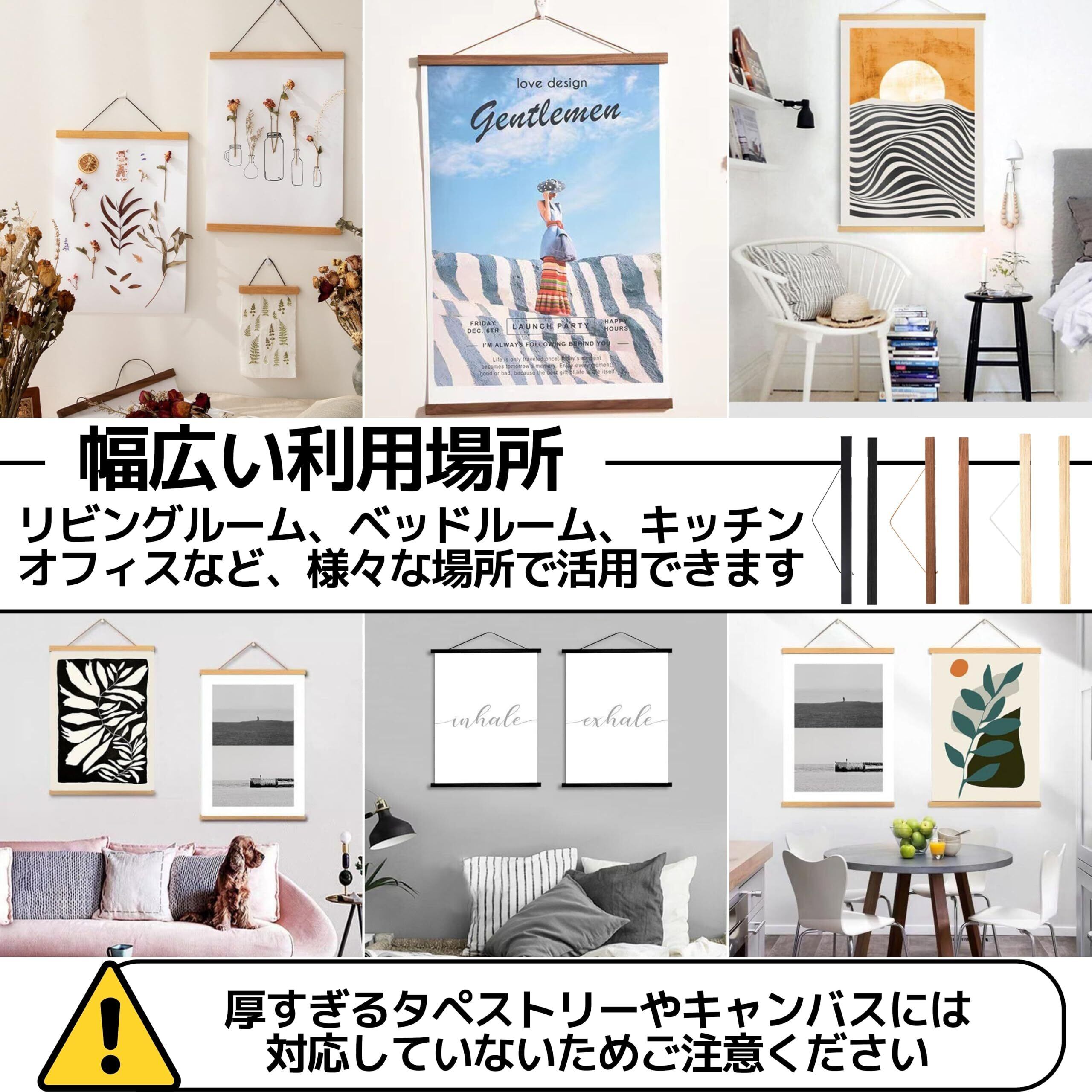 【仕様】ポスターハンガーのサイズ:31x2cm、素材:MDF、セット内容:タペストリー棒 2点セット(計4本)、ストラップ2本