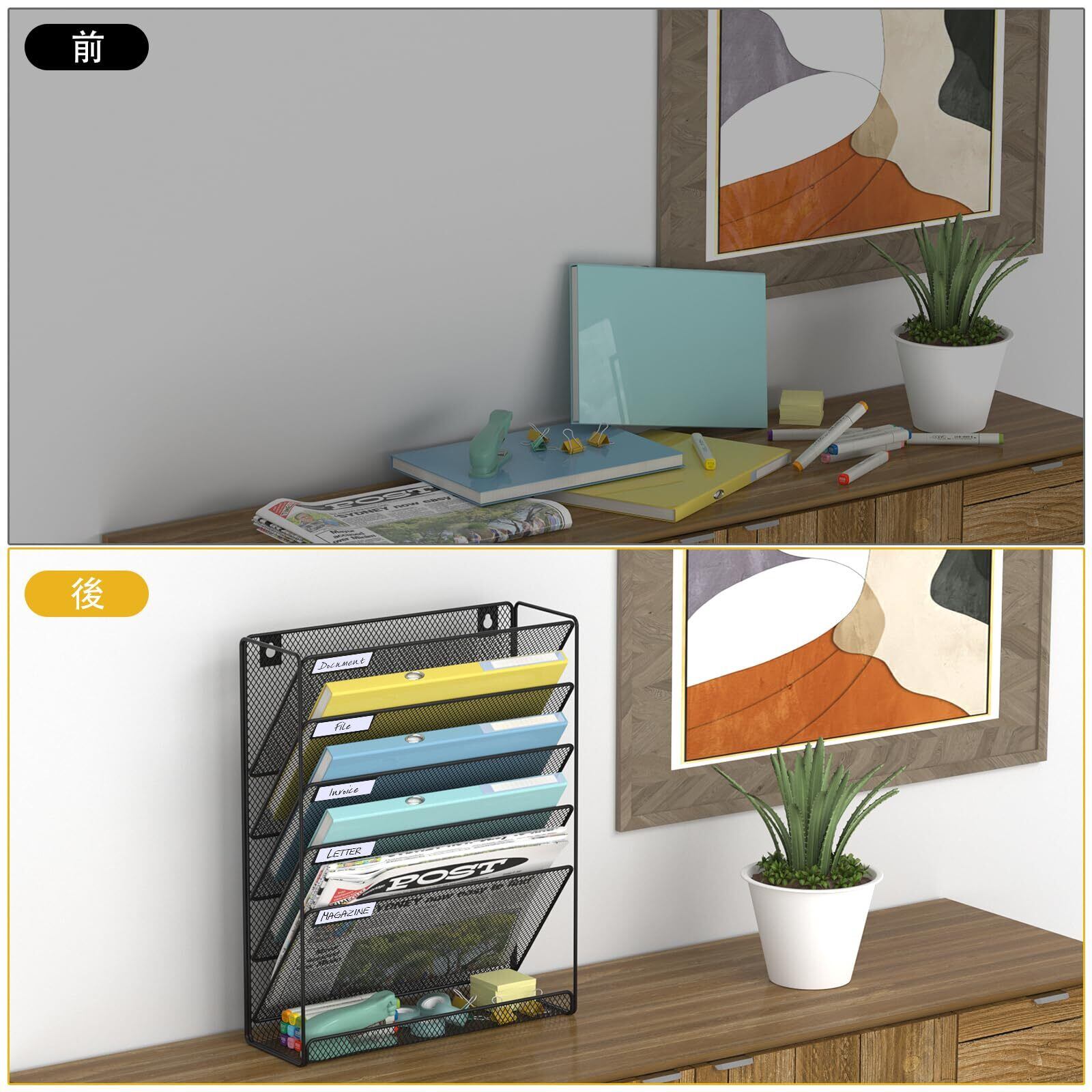 【散らかりにさようなら】壁掛けファイルオーガナイザーは垂直空間を最大限活用でき、デスクトップでの使用も可能。製品はデスクを常に整理整頓し、自宅やオフィスをより秩序ある空間に保ちます。