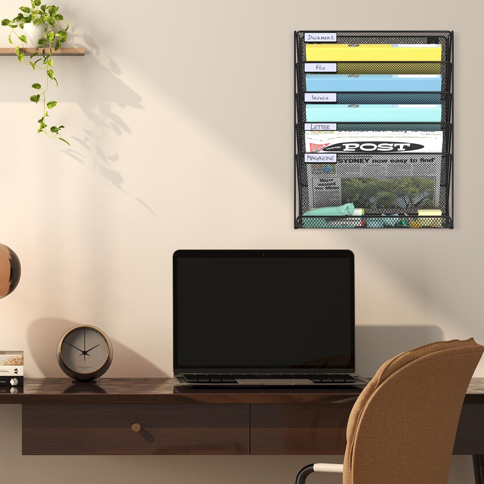 【耐久性メッシュファイルオーガナイザー】高品質な粉体塗装メタルメッシュ製。壁掛けファイルオーガナイザーは日々の使用に耐える優れた品質を備えており、頑丈で酸化防止・防錆処理済みです。