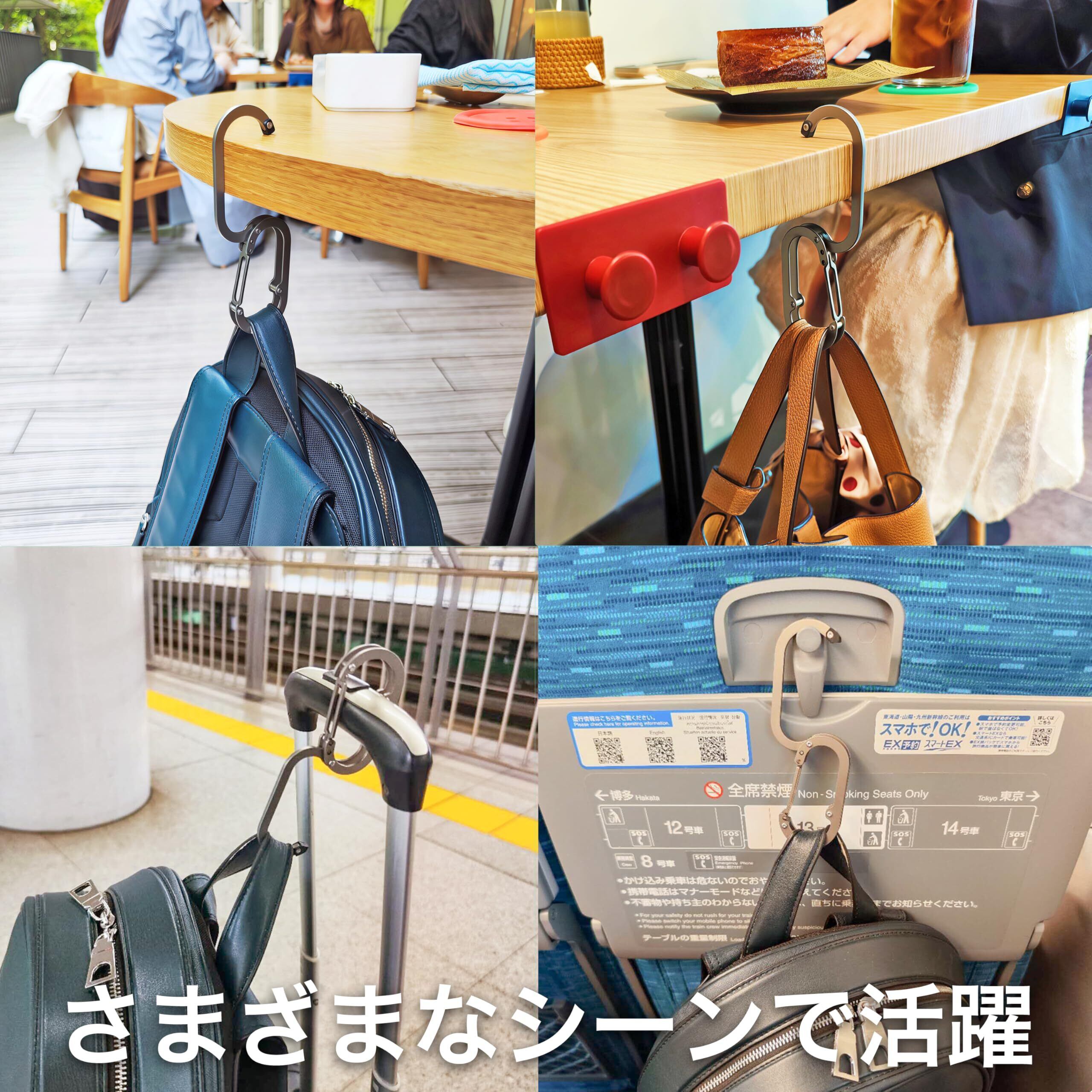 【耐荷重20kg】重たいバッグや複数の荷物も安心して掛けられる高強度仕様。カフェやオフィス、出張・旅行先など、さまざまなシーンで頼れる存在です。