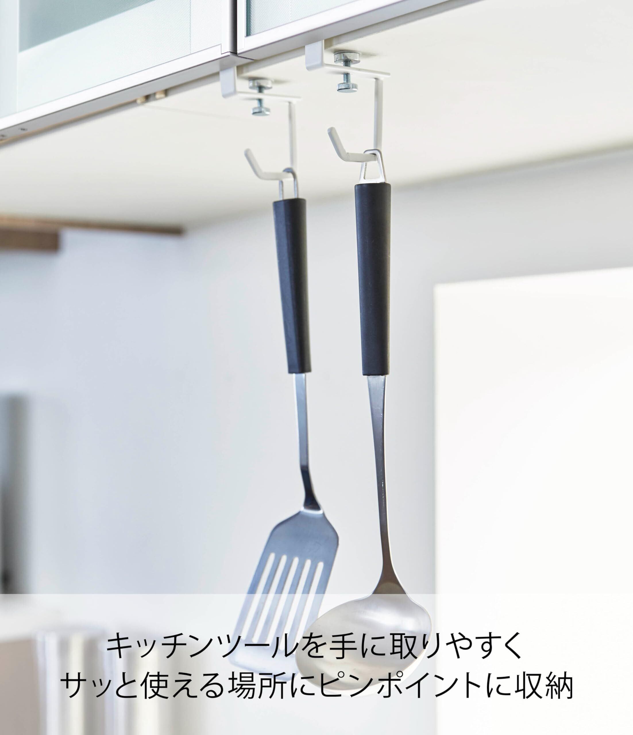 吊り戸棚に簡単取り付けのキッチンツールハンガー。ピンポイントで欲しいところに!