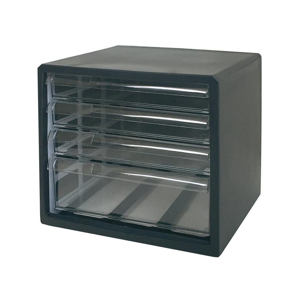 A4サイズの書類、小物などの整理・保管に便利です。引出しは書類の整理に便利な浅型3段・深型1段があり、深型タイプはA4用紙も梱包ごと(500枚)収納でき、穴開けパンチや小型セロテープカッターなども入る高さです。引出しは透明度に優れ、内容物が良く見えます。