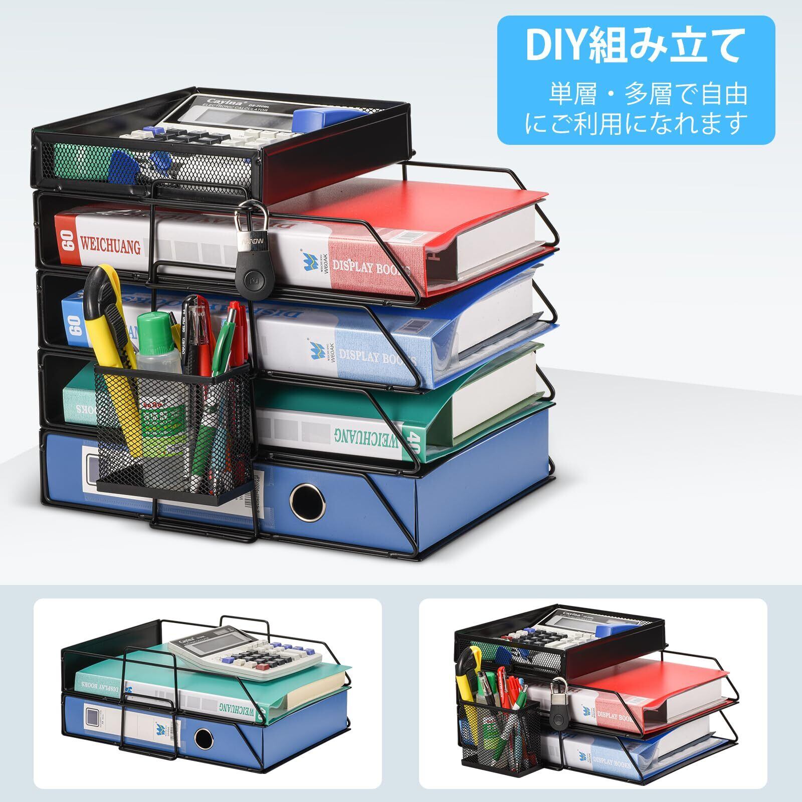 【組み立てが簡単】 書類ケースは取り付けや取り外しが容易なロック構造で、シンプルな作り、組み立ても数分で説明書も見ずにできました。お一人でも簡単に組み立てていただけます。用途に合わせ1段~5段まで組み合わせることが出来ます。書類ケースのレイヤーは、お好みで自由に変更できます。ペン立ては左右どちらにも掛けることができ、位置を自分で調整できます。