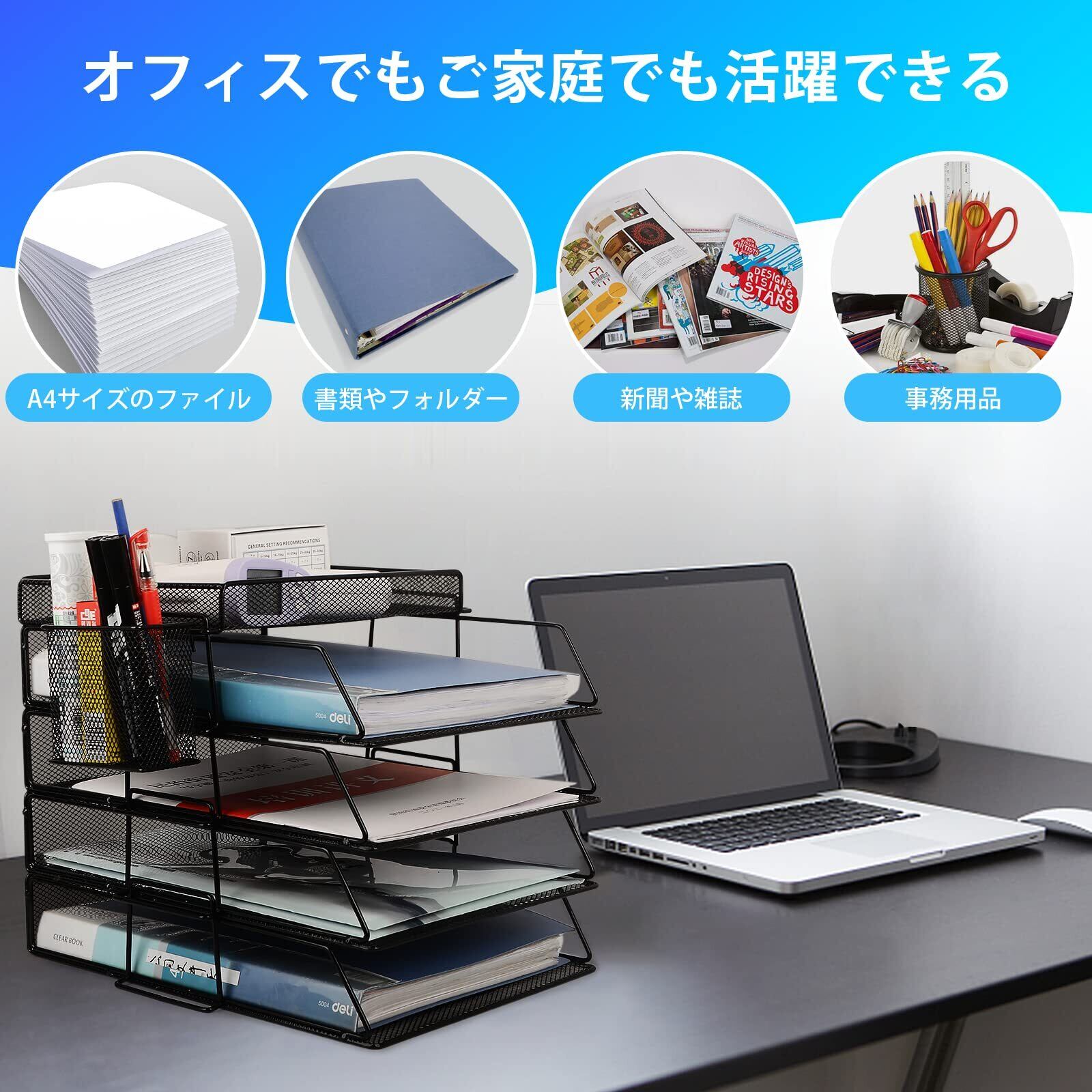 書類トレー 4段 縦置き 卓上収納ラック A4レターケース ファイルボックス 書類整理 小物入れ ペン立て 文房具収納 オフィス おしゃれ ブラック (4段, ブラック)