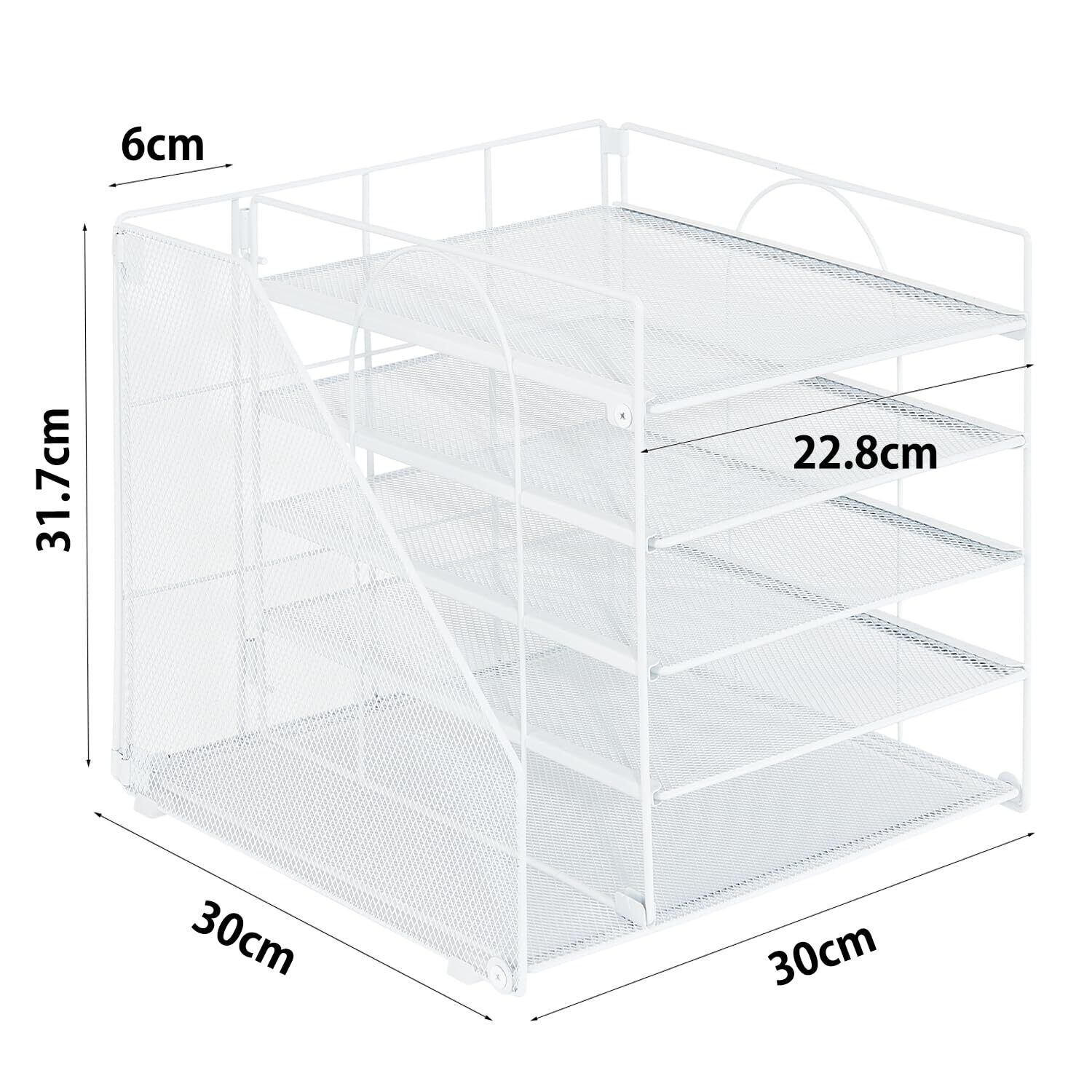 【特価セール】書類トレー 5段 卓上収納ラック A4 レターケース ファイルラック 書類整理 縦置き 金属製 大容量 オフィス A4ファイル/フォルダー/新聞/雑誌/書類入れ (ホワイト)