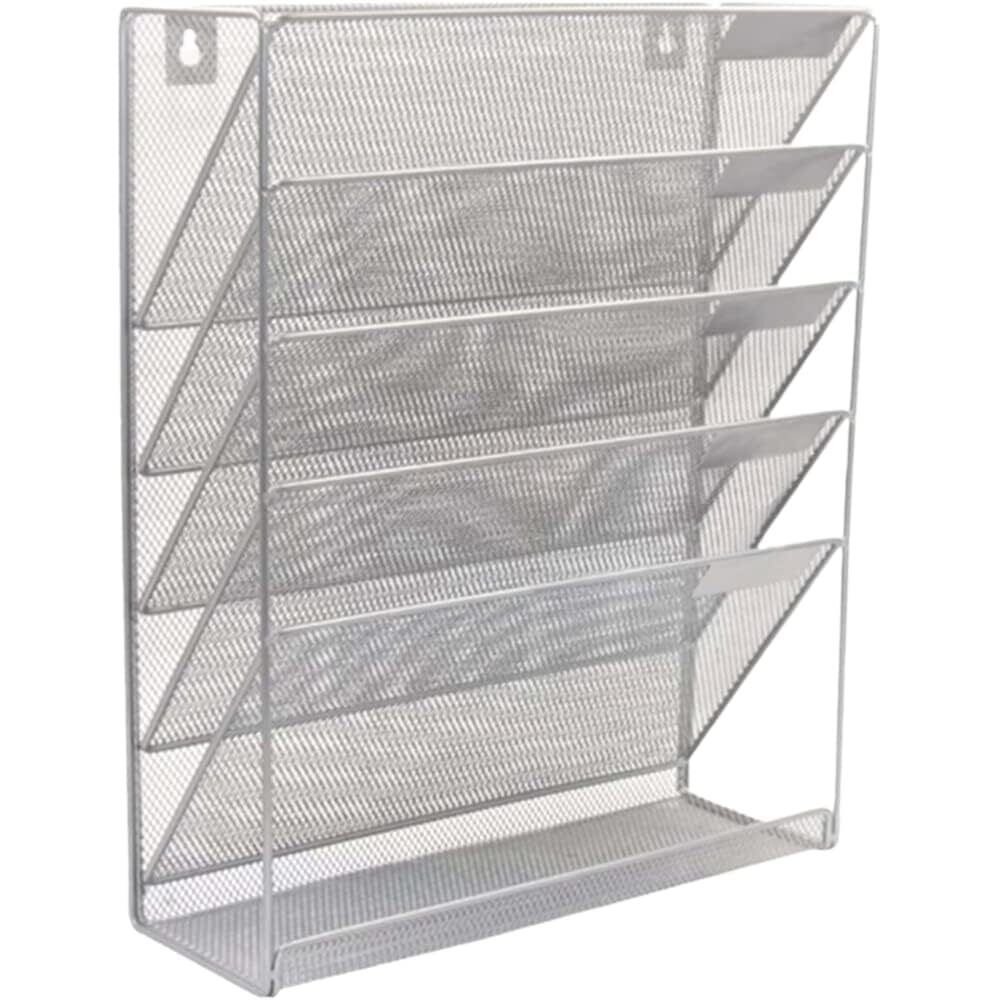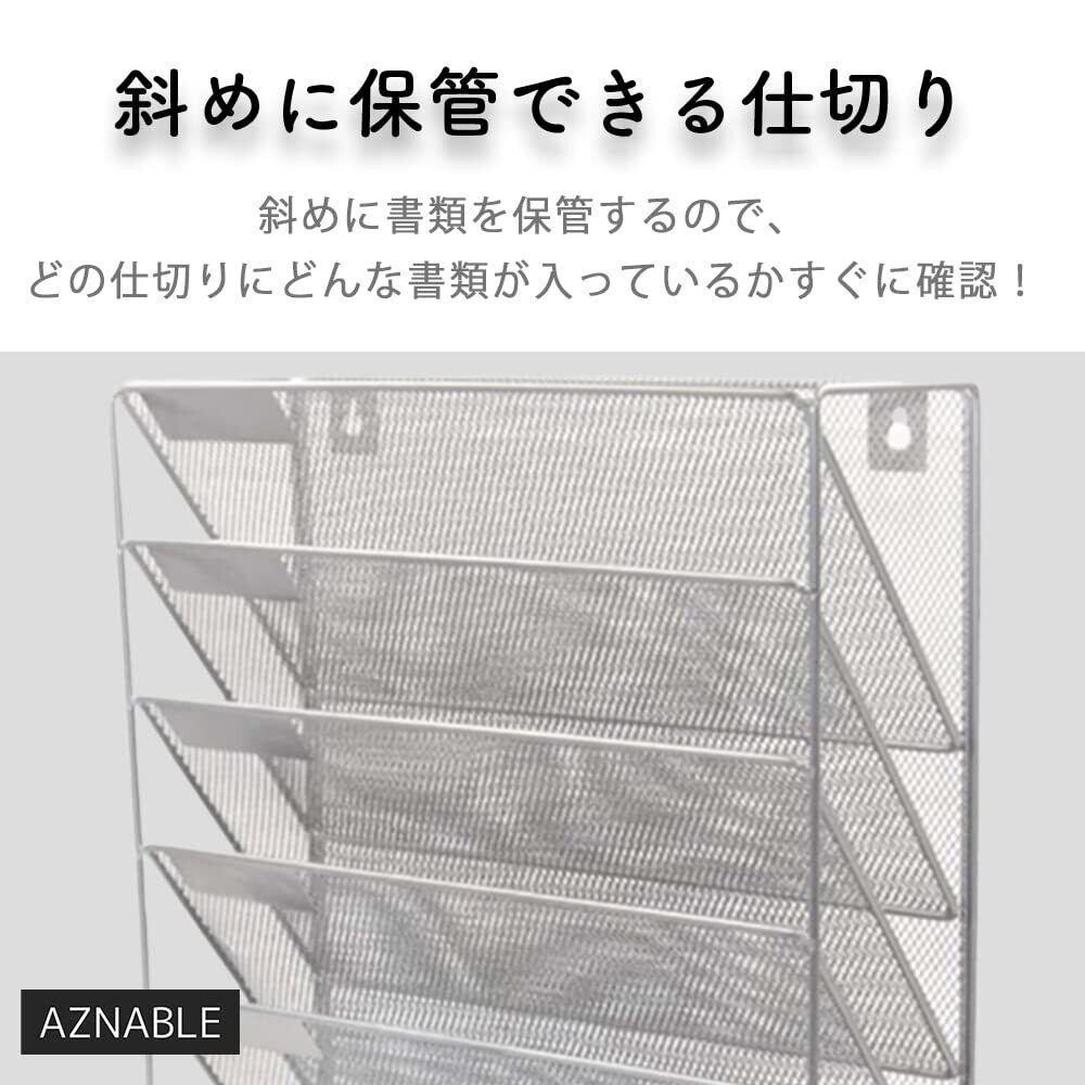 AZNABLE 卓上収納ラック 6段 斜め ファイルラック 卓上 A4 スリム おしゃれ 書類トレー 縦 (シルバー)